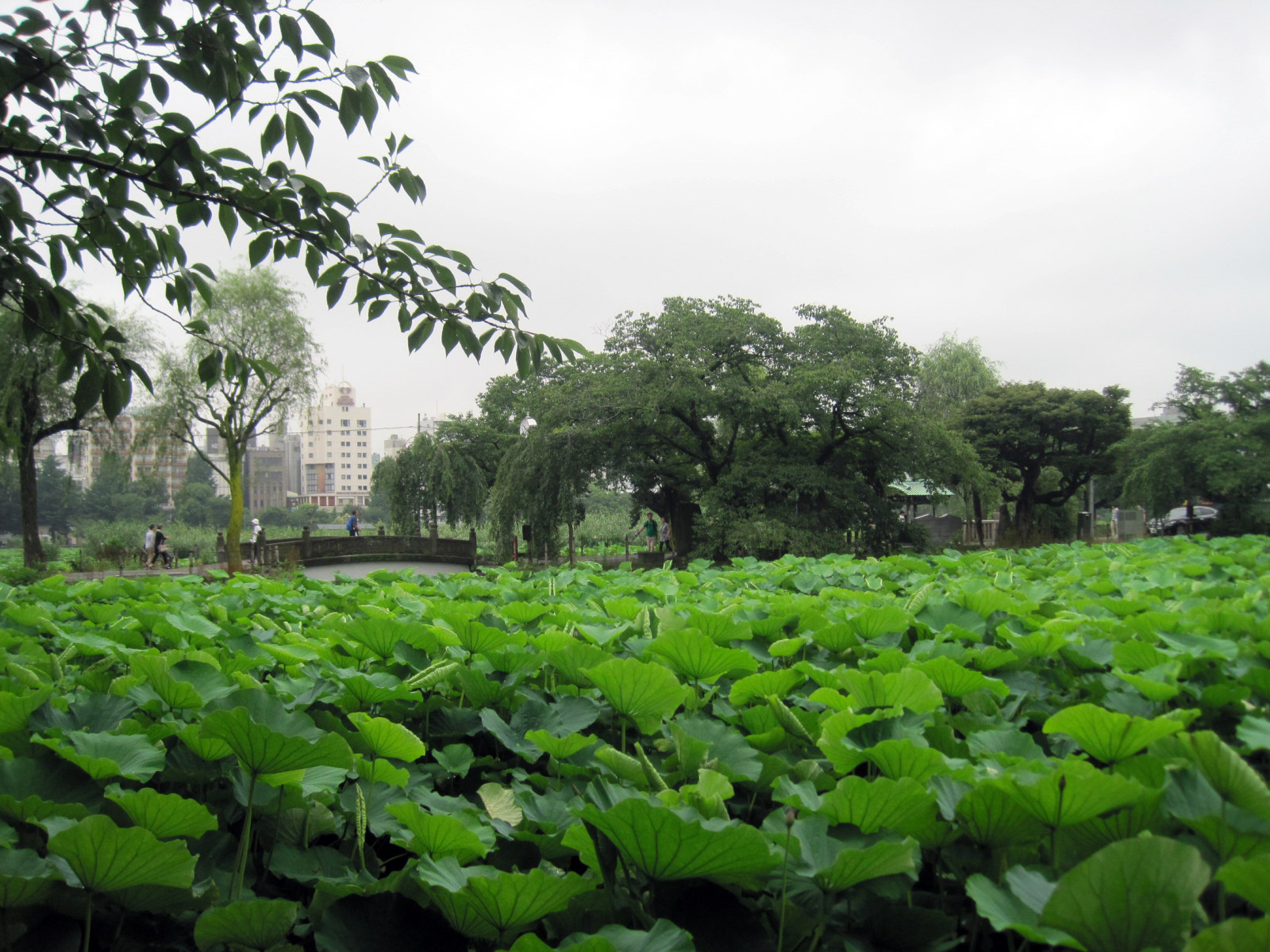 蓮池とボート池の間の道路を進んで,会議に向かいましょう!