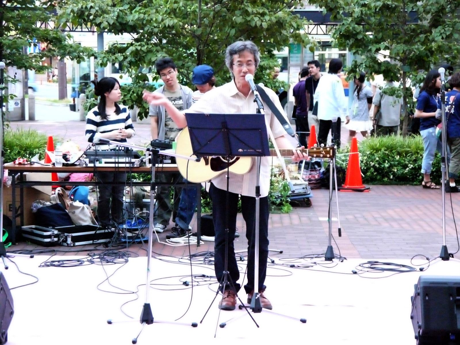 川崎医科大学は・・・1〜4年生は試験直後・・さらに5〜6年生も多忙ってことで・・でも,大学として参加したいなぁ・・・っていうのは,言い訳で,単に大槻が歌いたかっただけですが,アコースティックライブで,参加しました。40年前の歌詞が原発事故を受けて新たな生命を宿された幸田圭子さん作詞の「帰ろう」そして,「3.11その後」を唄いました。