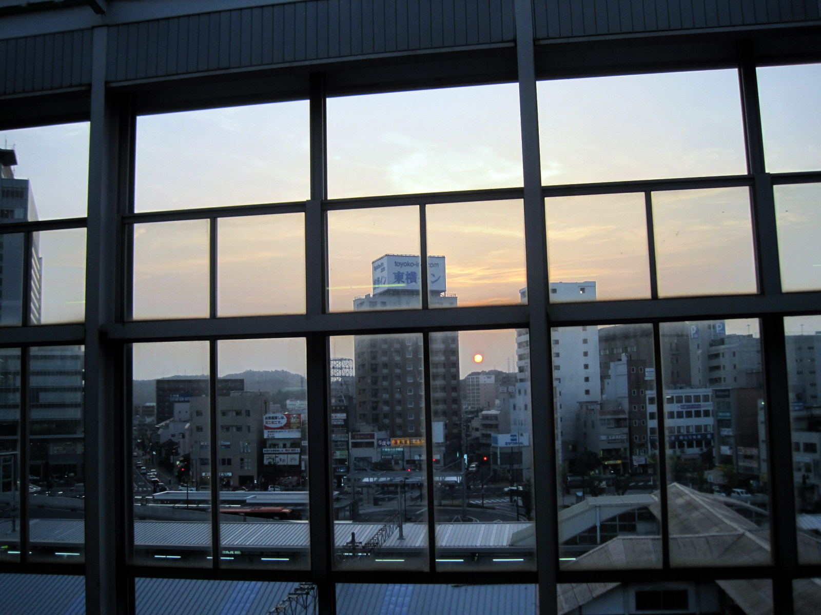 今回は,AMの会議だったので,前泊でした・・往路の岡山駅からは丁度夕陽が沈む頃・・・山陽本線って東西に走っているのですが,岡山駅のところだけ路線が南北なので,岡山駅は東口,西口で,かつホームからは西の空に夕陽が沈んでいくのです!