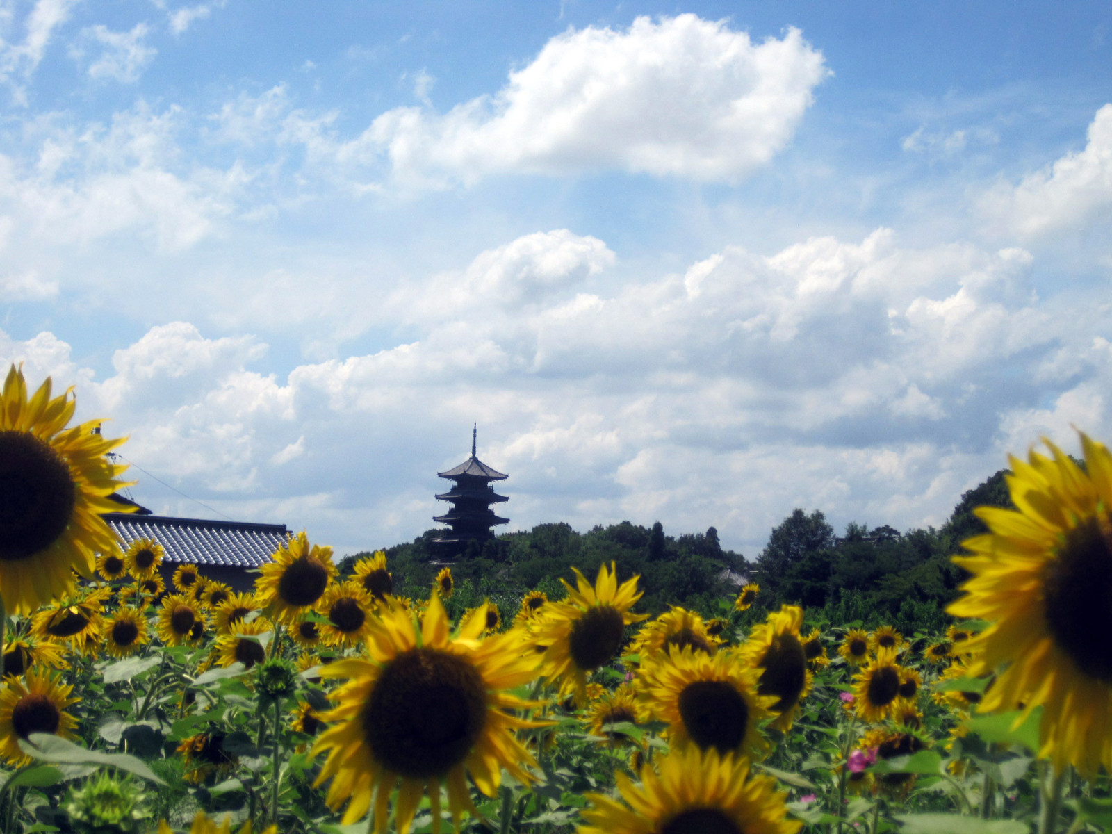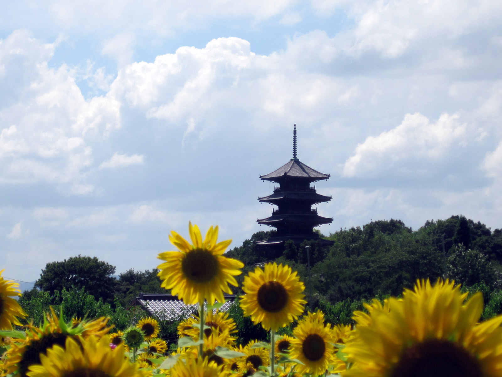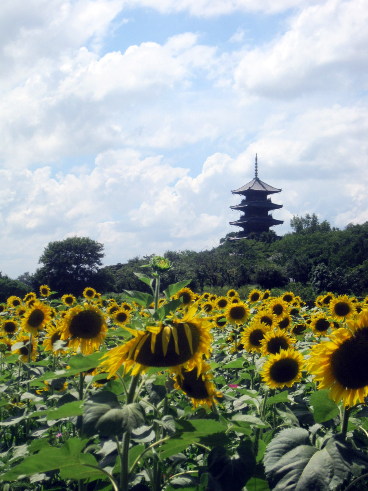 さて今日の「ちょっと寄り道/ブラ@タケミ」・・・備中国分寺の五重塔は・・・ひまわりの向こうです。