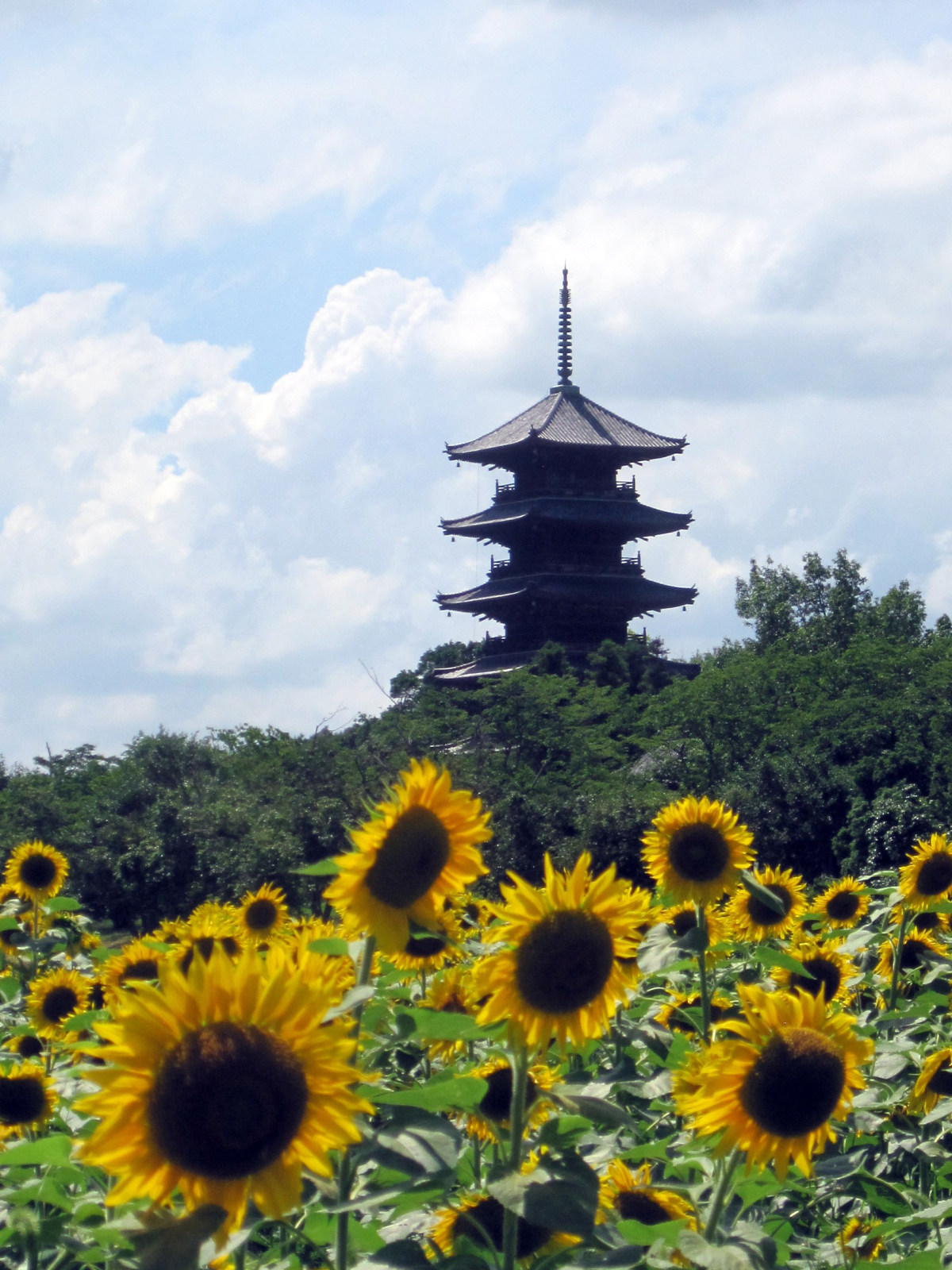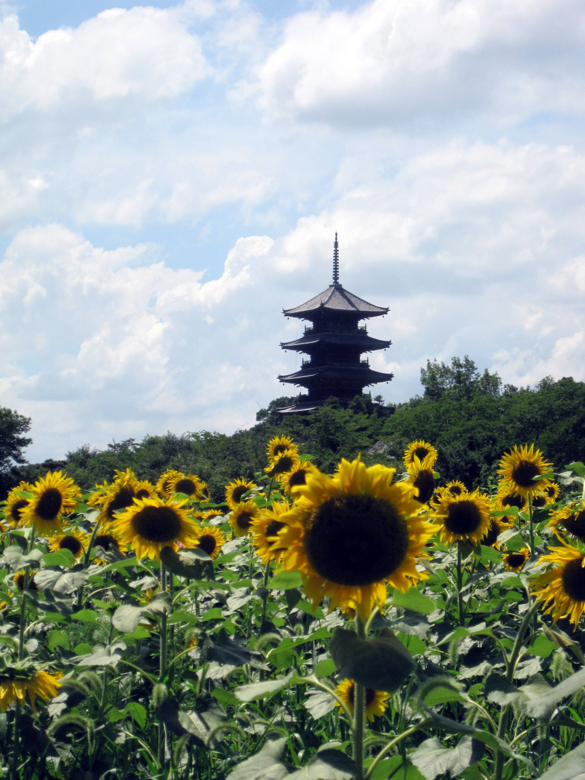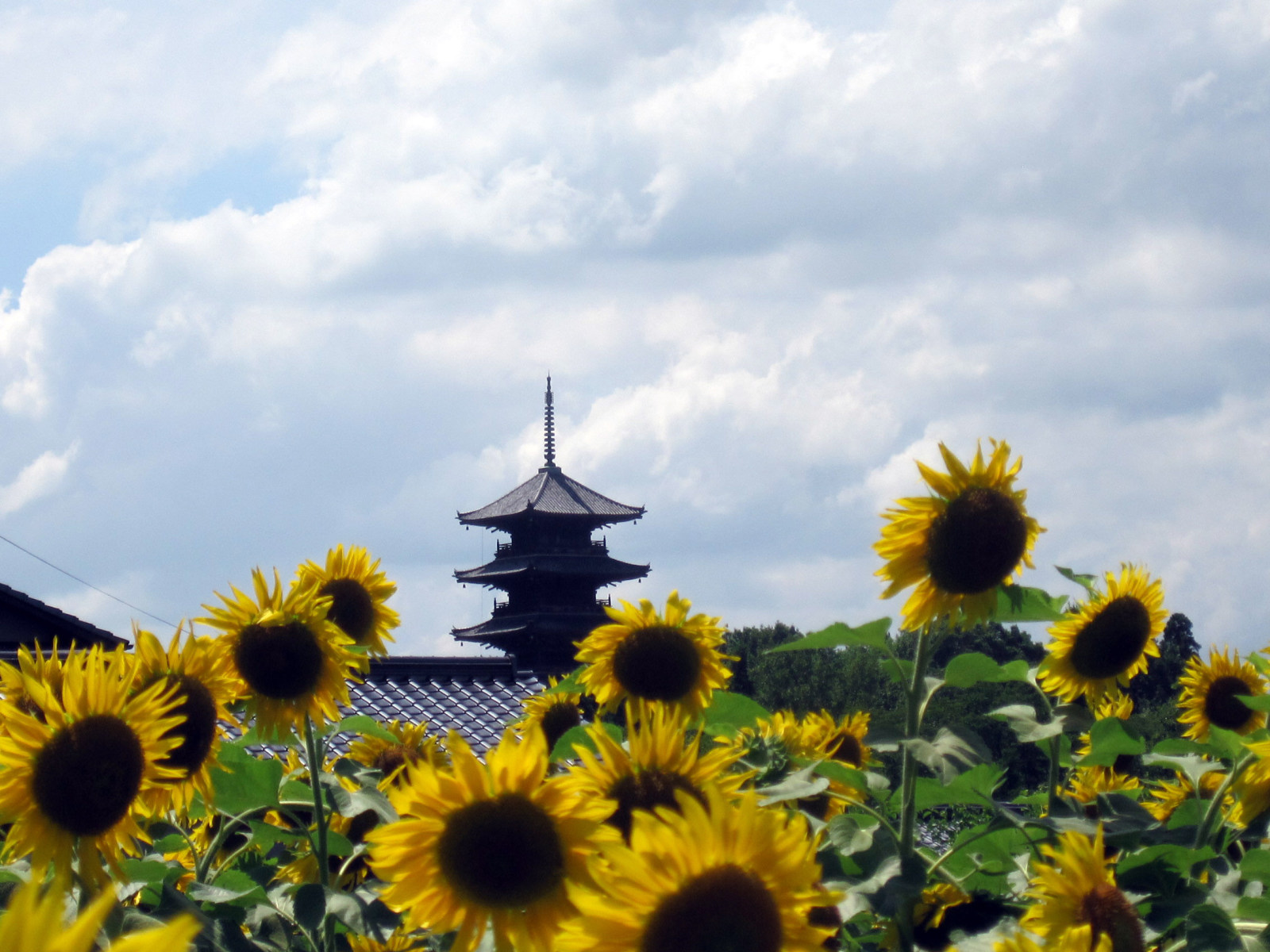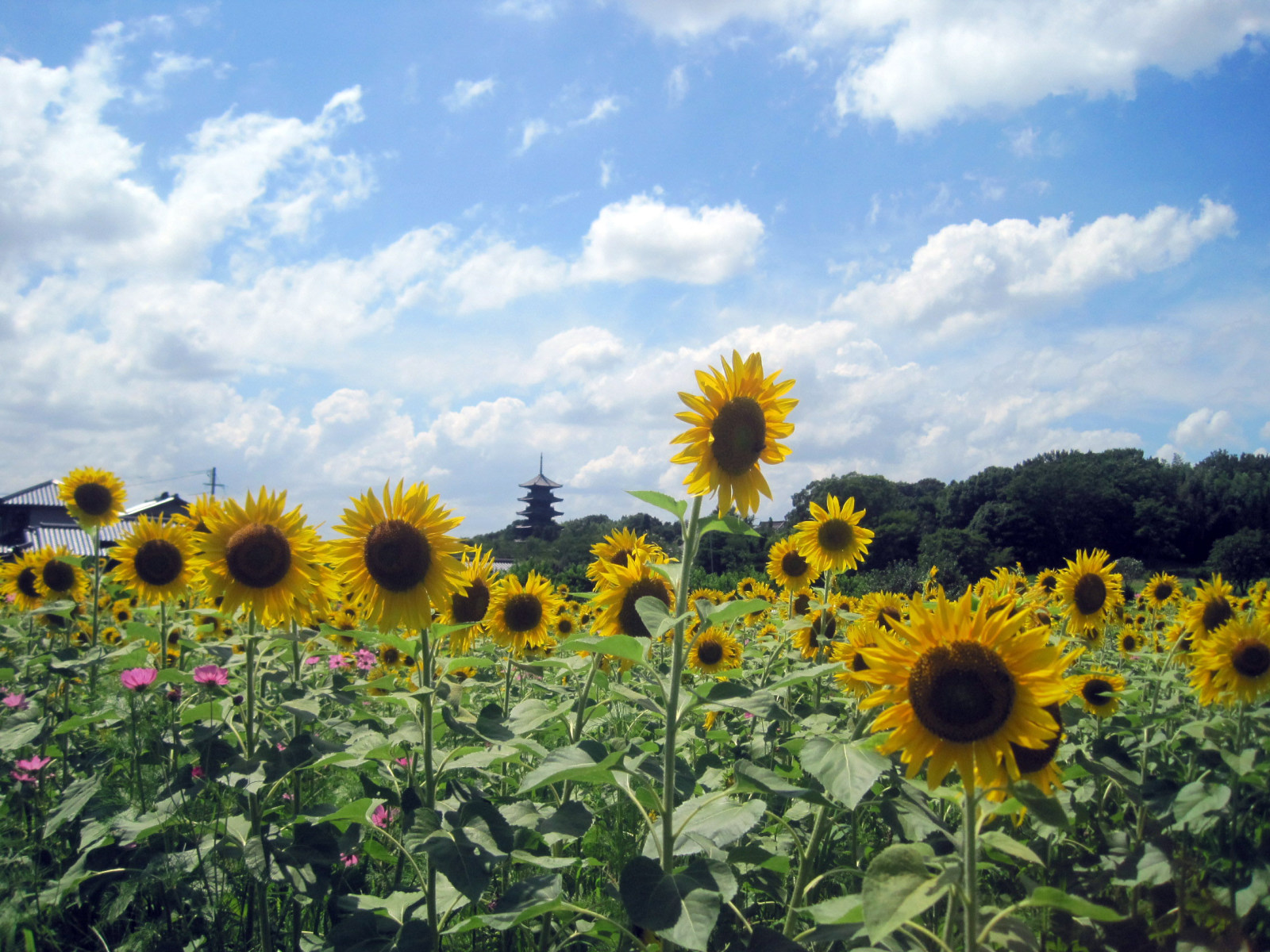 さて今日の「ちょっと寄り道/ブラ@タケミ」・・・備中国分寺の五重塔は・・・ひまわりの向こうです。