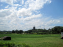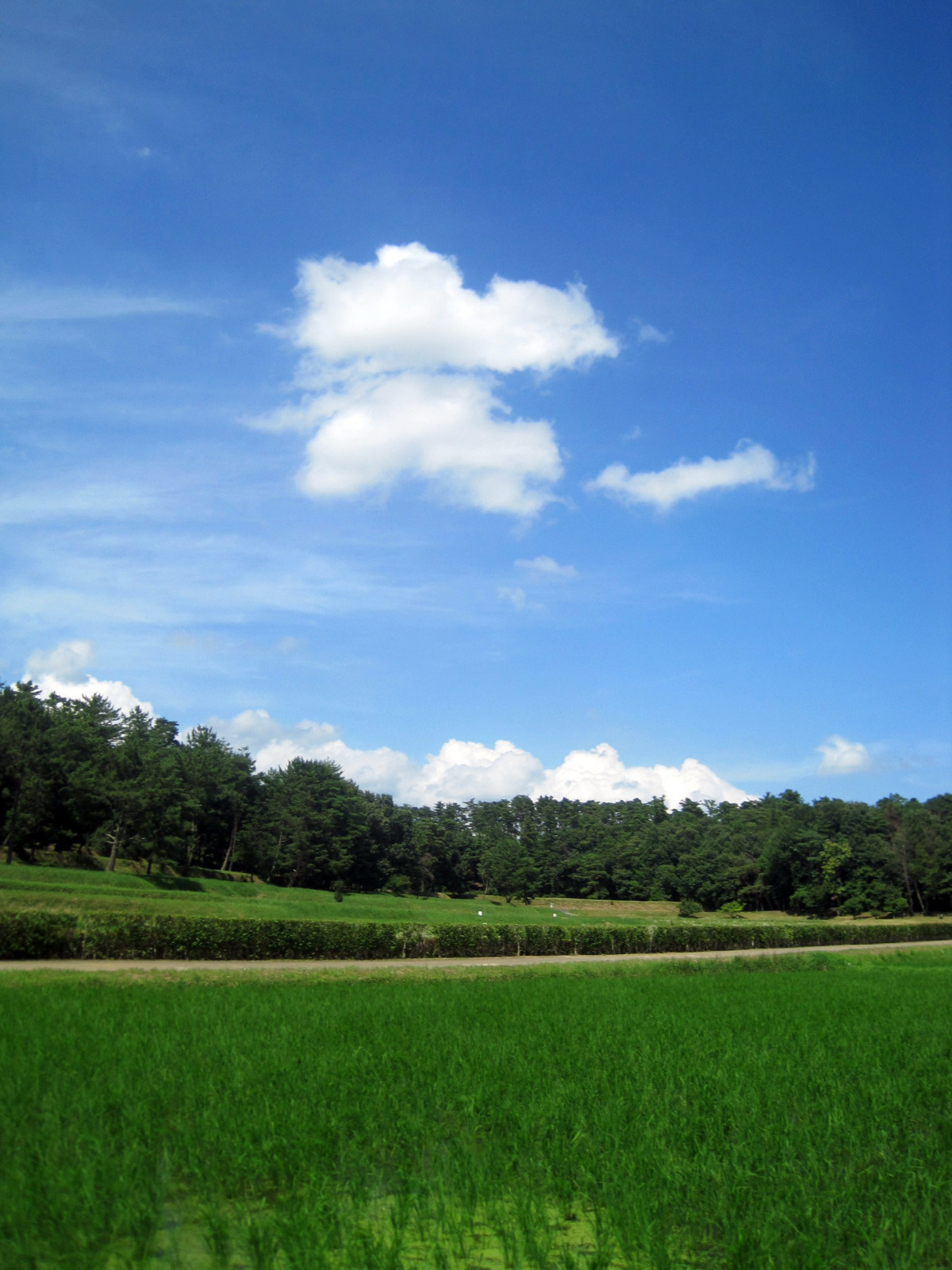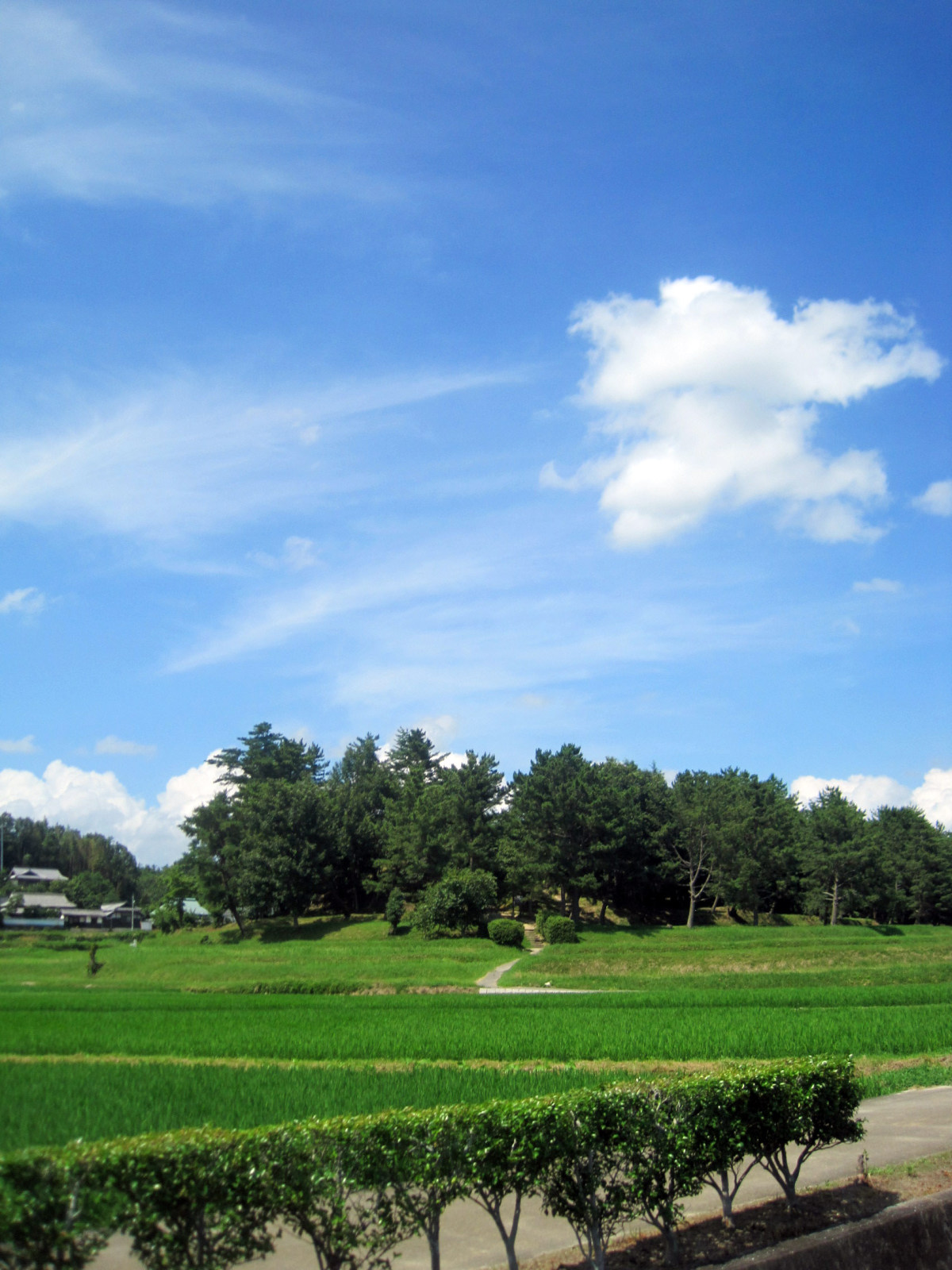 西に向いて・・・ちょうど,五重塔側は,少し雲が多くって・・・東は,青い空に雲がぽっかりと浮いています。