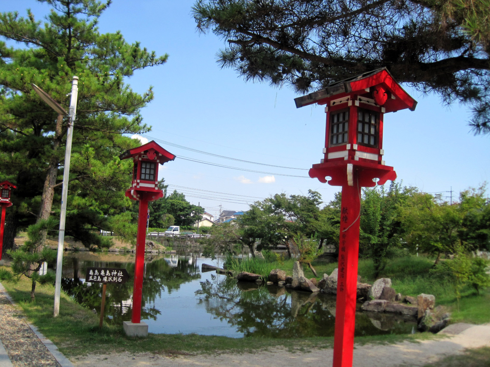 さて,社殿〜本殿を眺めやりながら・・・亀島の方の池に・・・・