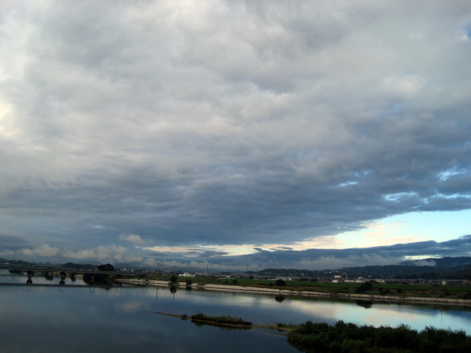 船穂大橋の当たり・・・笠岡近く・・・未明までの雨で大気が不安定ななか・・少しずつ北西から晴れ間が見えてきていました。