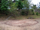 スクータを停めたところから入って行ったので,ちょっと境内の横の方から入りました。土俵とかもありますね! 岡山ではあまり見ません。