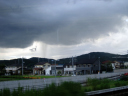 理大から戻った中庄駅でも天候が不安定・・雲が広がっていたり・・・JR車窓から・・・ゲリラ豪雨??? ひとすじ雨の束のようにもみえます。