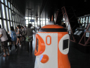100m降りると,やっぱり視点が変化します! そして,たぶん遠足でしょうね,小学生たちも! さらに,この白とオレンジのロボット君は,案内をしてくれていました。国会議事堂もよく見えます。