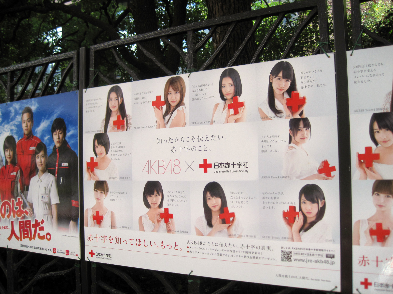さて・・この辺り,赤十字の・・これは本社? そしてAKBは本当に数限りなく広告に出ていますね!