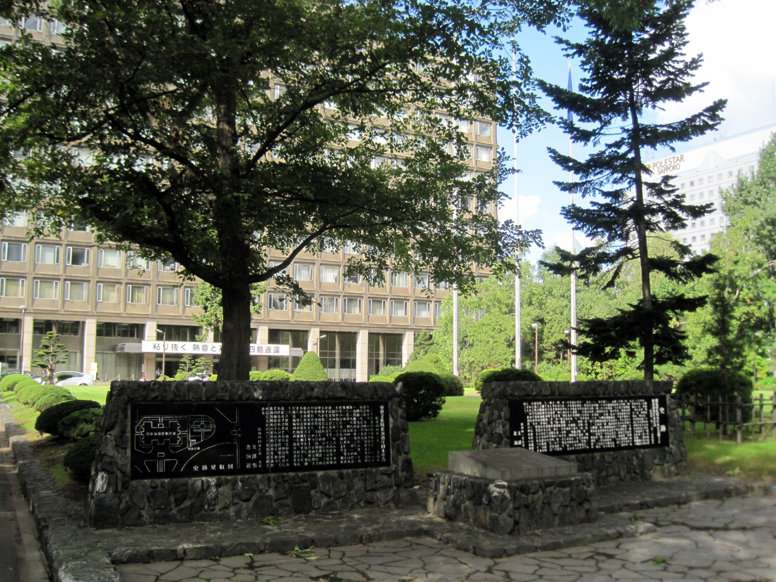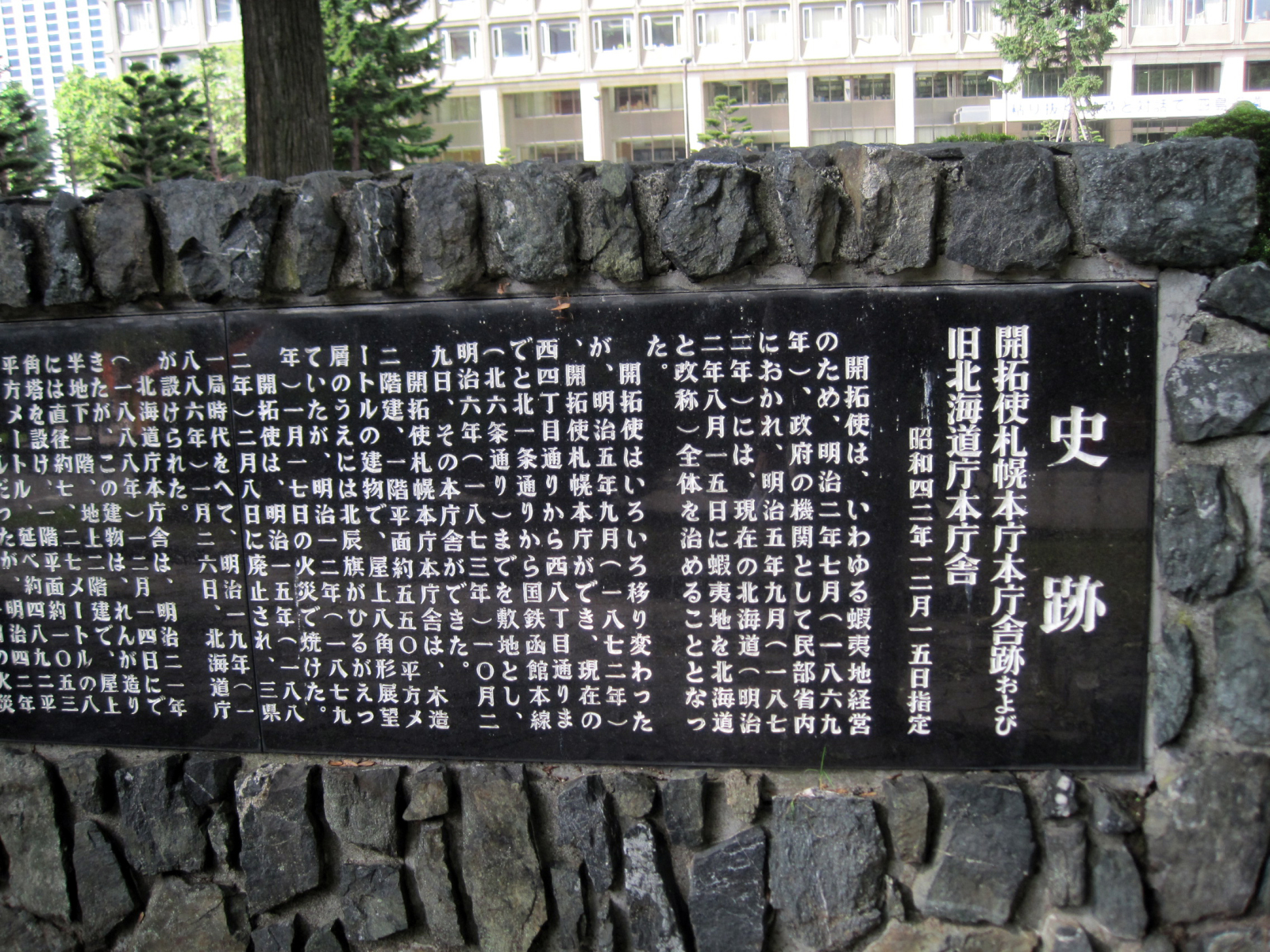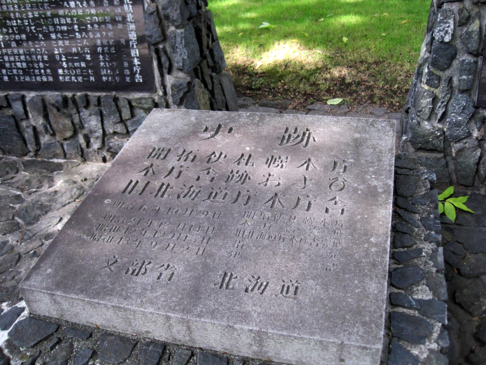 【「赤れんが」の愛称で親しまれている北海道庁旧本庁舎は、1888(明治21)年にアメリカ風のネオ・バロック様式で建てられました。日本の明治期を代表する建物とともに、緑豊かな前庭は札幌市のオアシスとなっています。庁舎の北側には「開拓使本庁舎跡」を示す石碑が立っています。また、内部は北海道の古文書などが収蔵された北海道立文書館として一般開放されています。】だそうです。