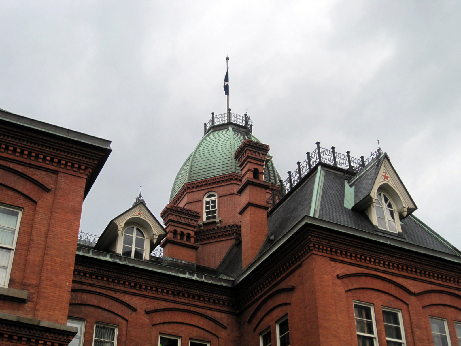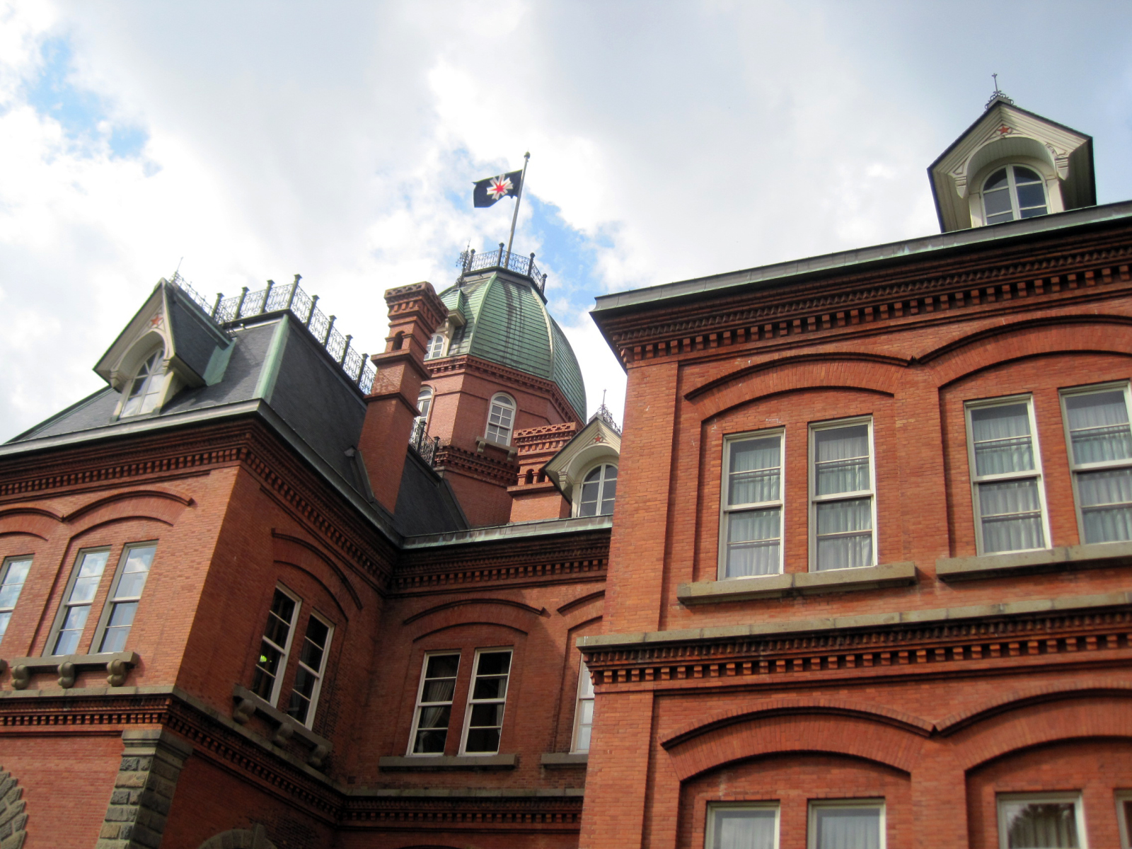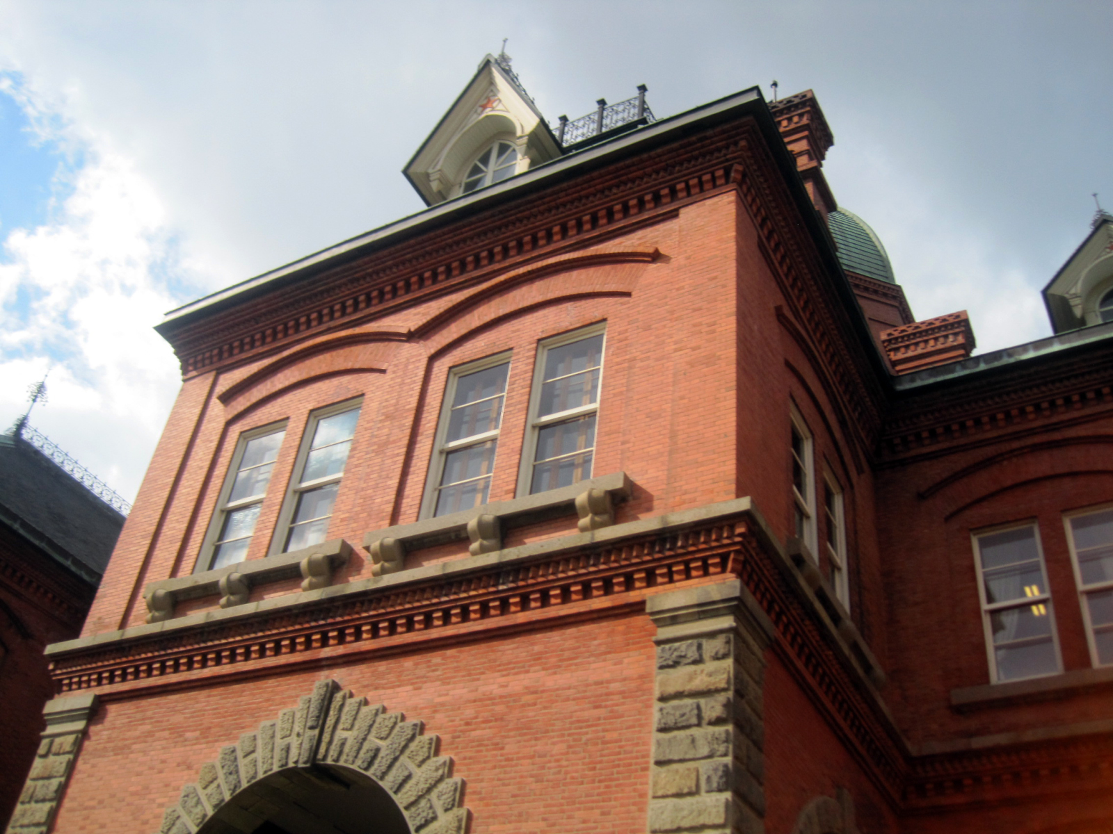 【「赤れんが」の愛称で親しまれている北海道庁旧本庁舎は、1888(明治21)年にアメリカ風のネオ・バロック様式で建てられました。日本の明治期を代表する建物とともに、緑豊かな前庭は札幌市のオアシスとなっています。庁舎の北側には「開拓使本庁舎跡」を示す石碑が立っています。また、内部は北海道の古文書などが収蔵された北海道立文書館として一般開放されています。】だそうです。