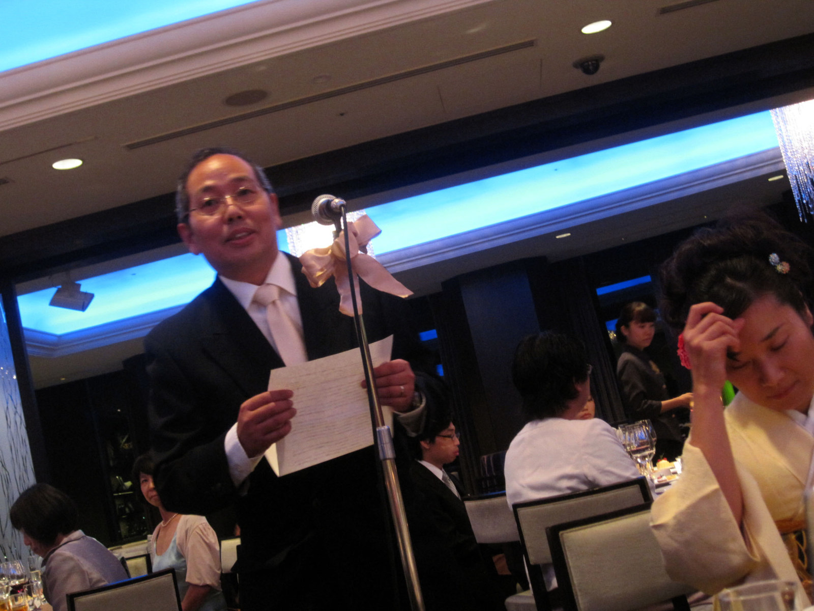新婦が入局する科の先生が,新婦側最初のご挨拶でしたが,大槻は,2番目に「恩師」ってことで,スピーチもしてきました。