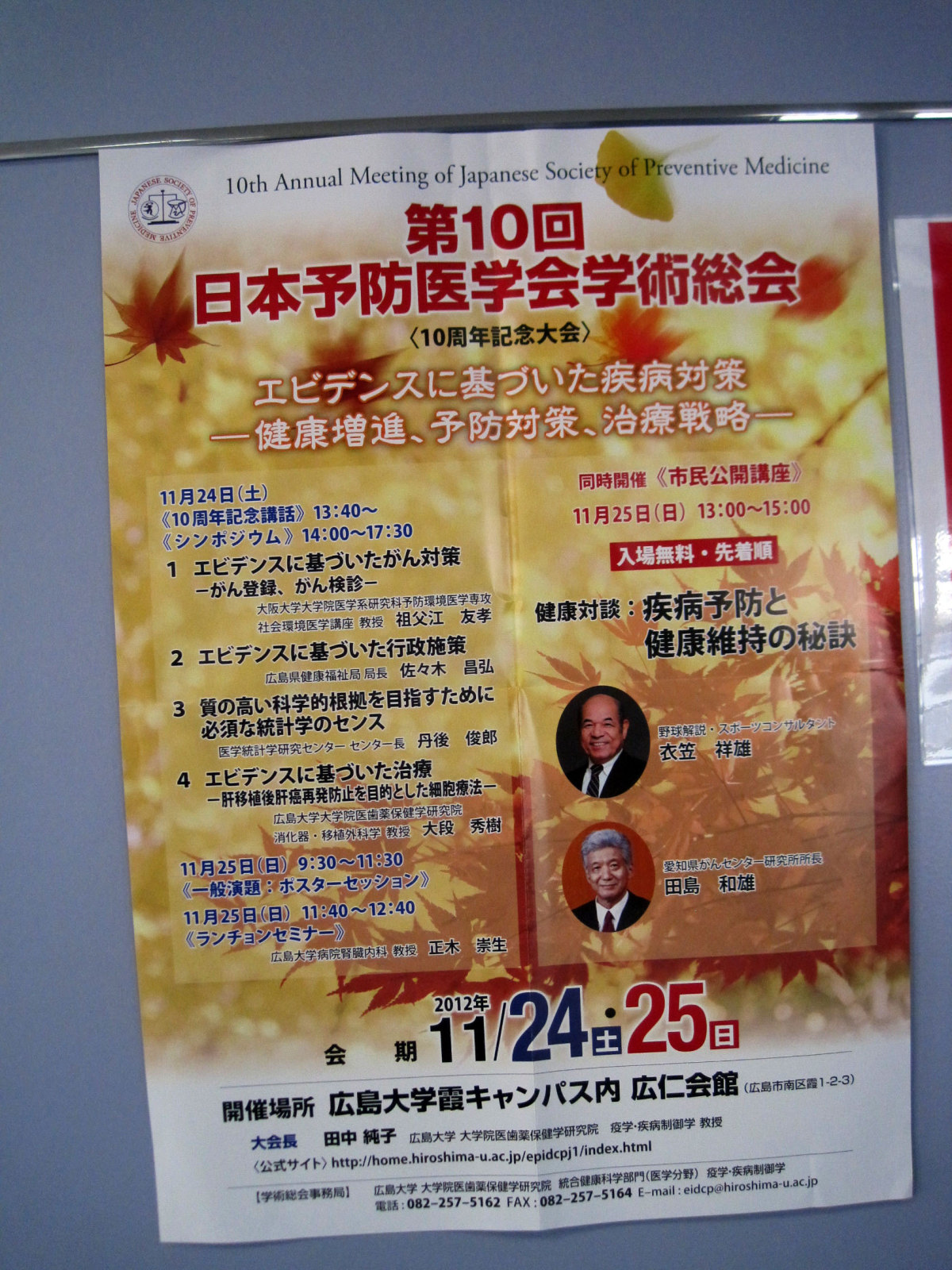 前日から広島大学霞キャンパスの広仁会館で開催されていた第10回日本予防医学会学術総会