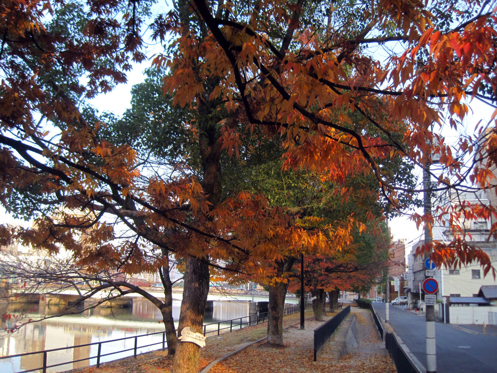 河畔の木々も秋の装い
