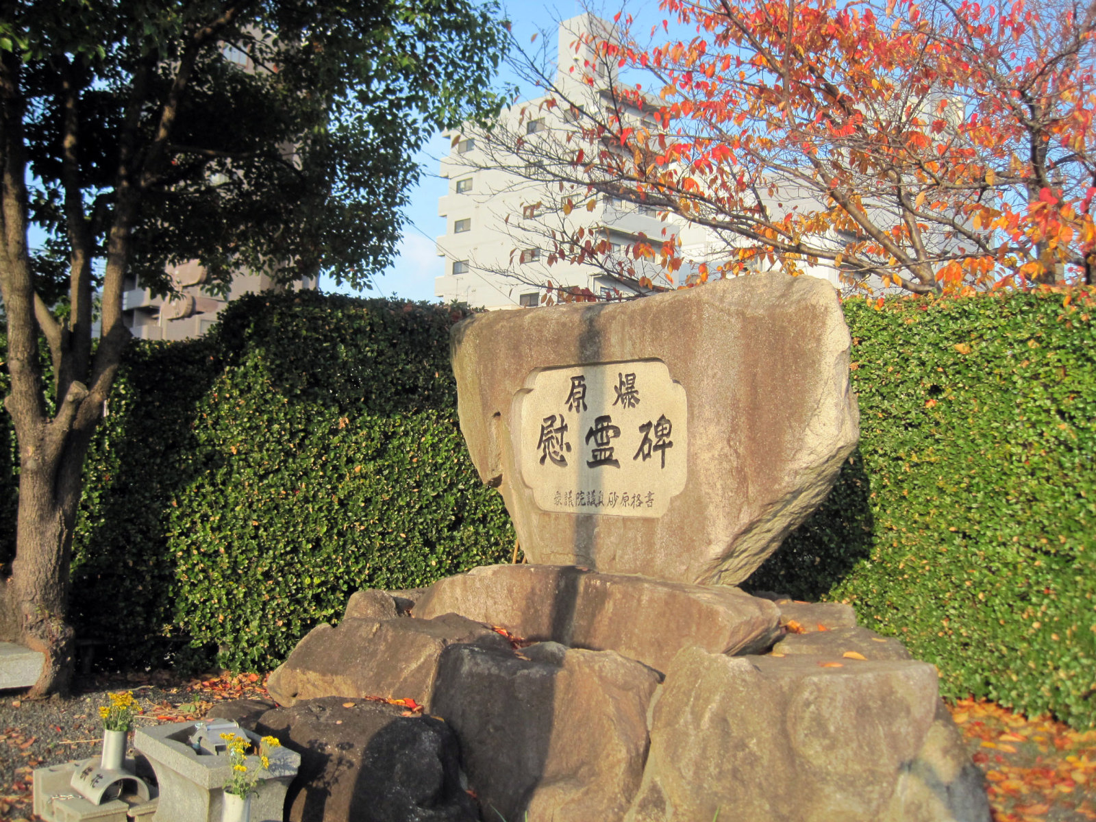 橋ごとのブロックに,原爆慰霊碑