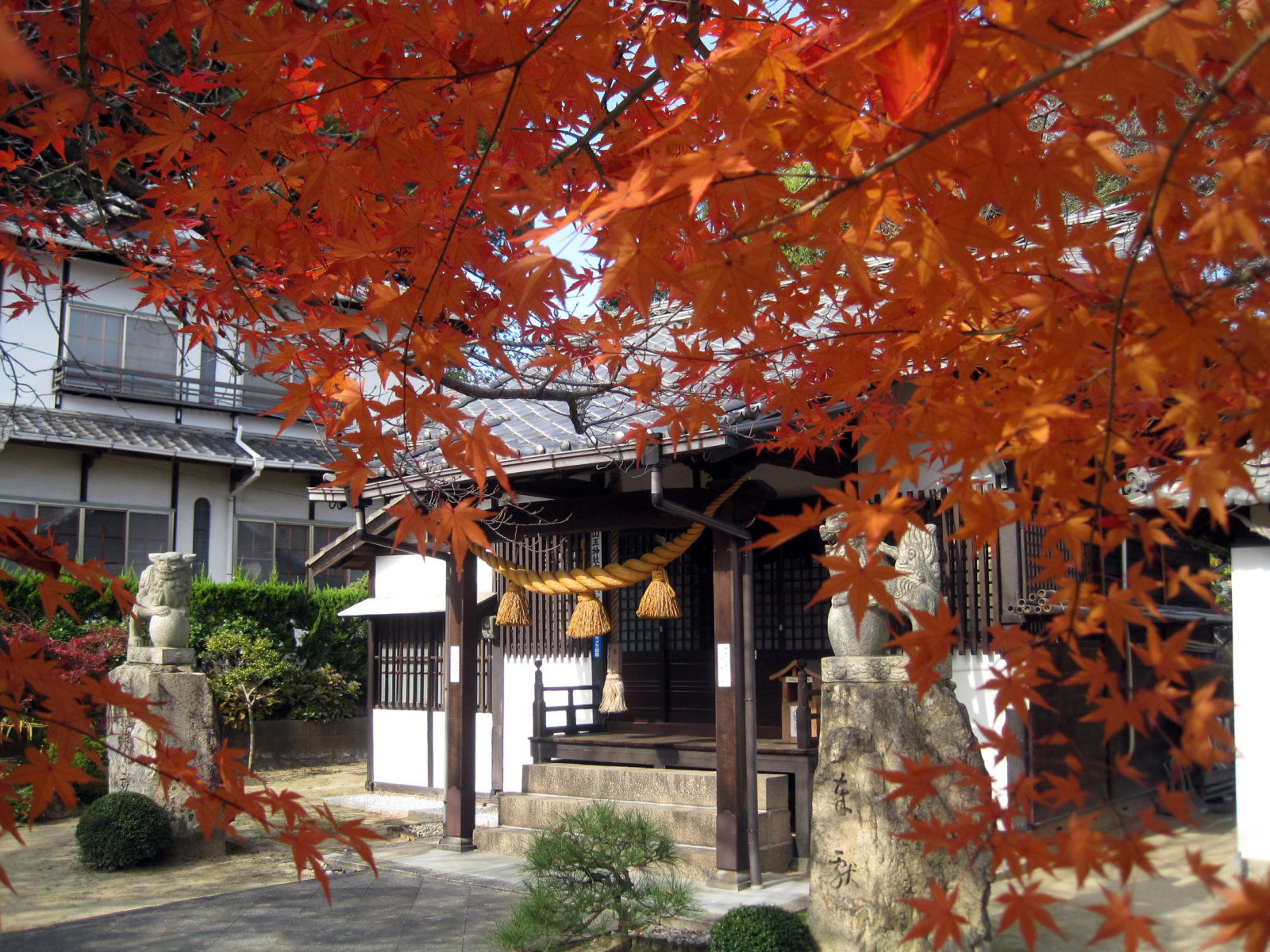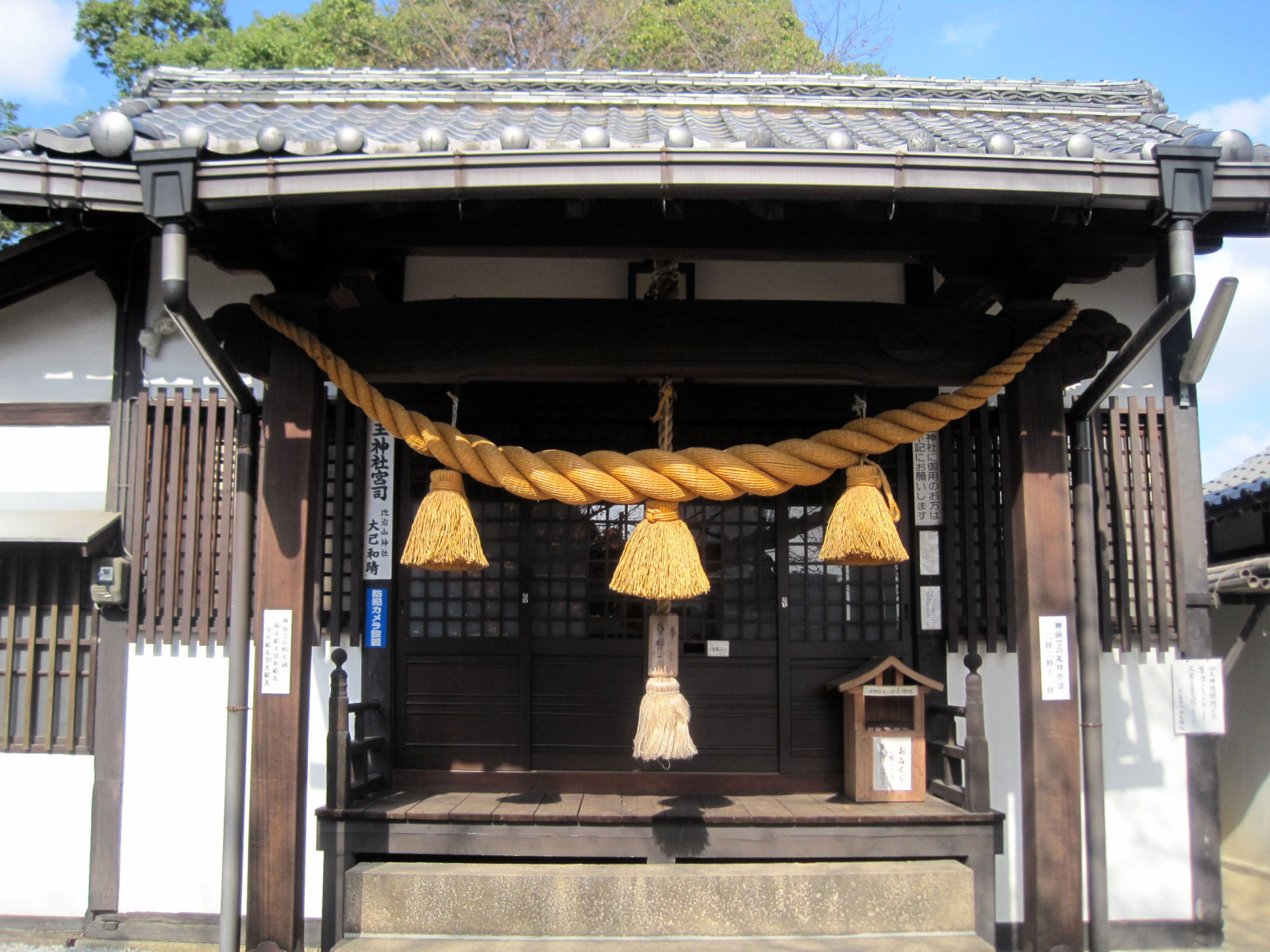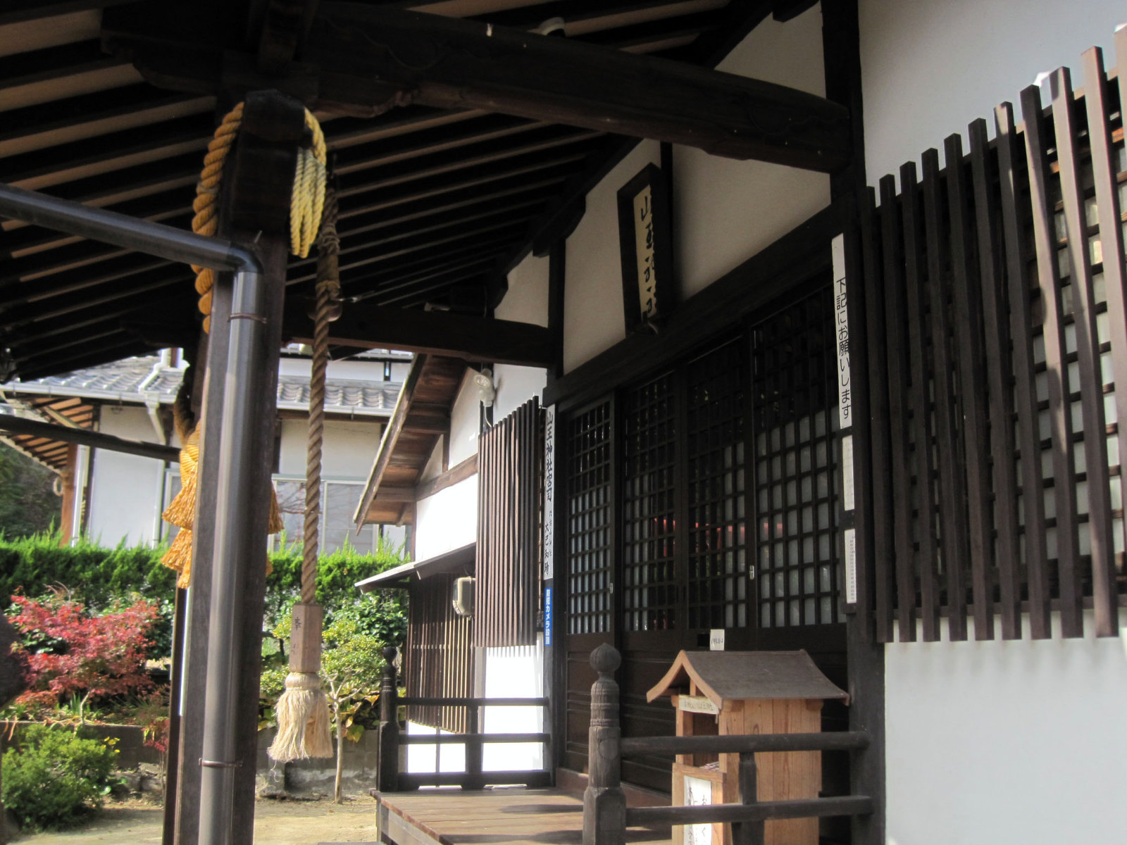 【⼭王神社は、正保3(1646)年現在地⻄南寄の旧社地に天狗松と称す⼤⽊があり注連を引き廻して祭神の猿⽥彦⼤神を奉斎したのが始まりである。この祭神は道案内の神と⾔われ、その⼤⽊は落雷により焼失し類焼を免れたので⼩祠を建⽴し、⽕の神として猿⽥彦⼤神の霊を励請し旧段原⼀帯の住⺠より崇敬される。慶応年間中半に⼩祠を⼩社に、⼜明治7(1874)年には社殿に改築し、更に明治40(1907)年現在地に社殿を新築して遷座祭を執⾏する。昭和20(1945)年8⽉の原爆により社殿は、多⼤の破損を蒙り、昭和28年地元の宗敬者達の協⼒により屋根及弊殿の修理を⾏い、更に昭和43(1968)年には明治百年記念事業として根本的改築を⾏い現在に⾄る。従来、⽐治⼭神社の摂社となっていたが、昭和28年宗教法⼈⼭王神社として独⽴法⼈を設⽴する。平成14(2002)年には、⼭王神社が奥州藤原家の縁の神社である福島県の光照⼭王神社の発祥本宮である事が古⽂書により判明し⼀段と注⽬される事となる。】との由緒です。