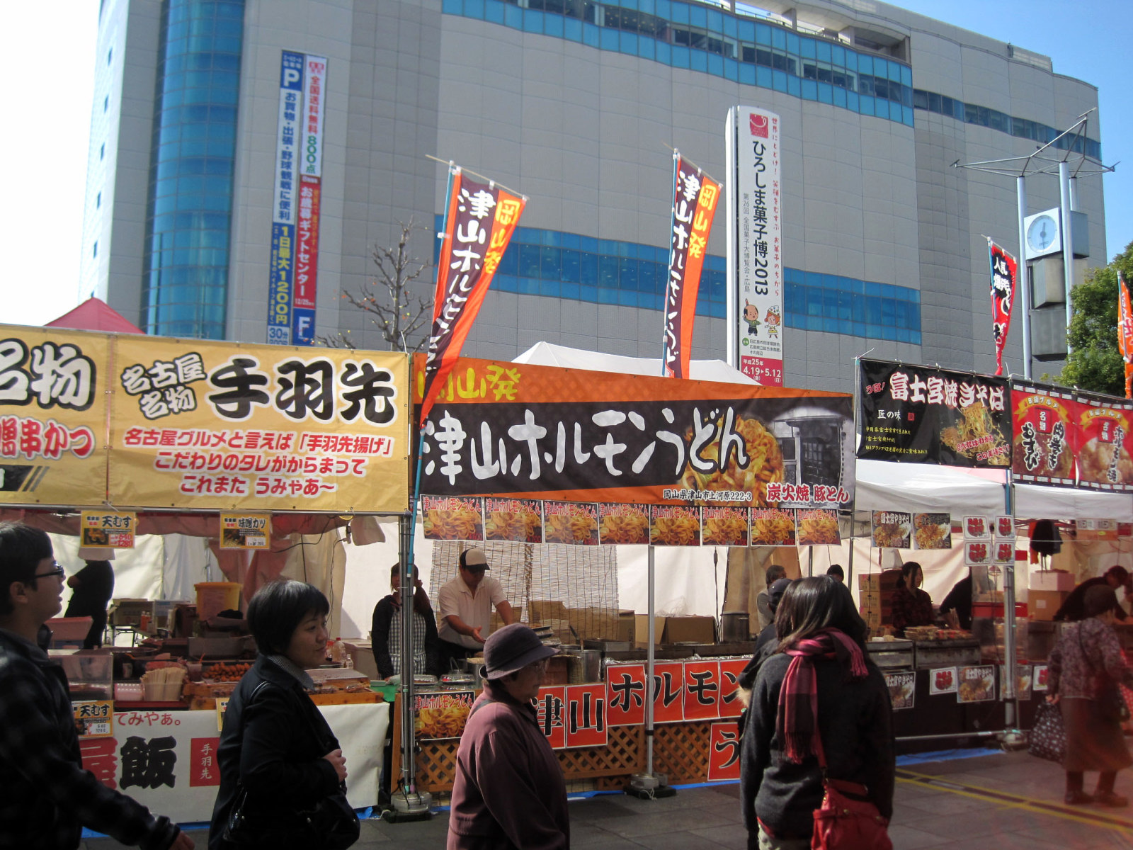 そして,再び普通列車の旅----広島駅前で・・・ご当地グルメフェア?? 津山ホルモンうどんの出店も