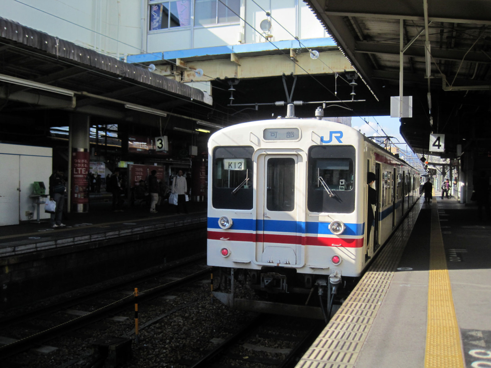 広島駅・・可部線の列車は,岡山では見ない車両です。