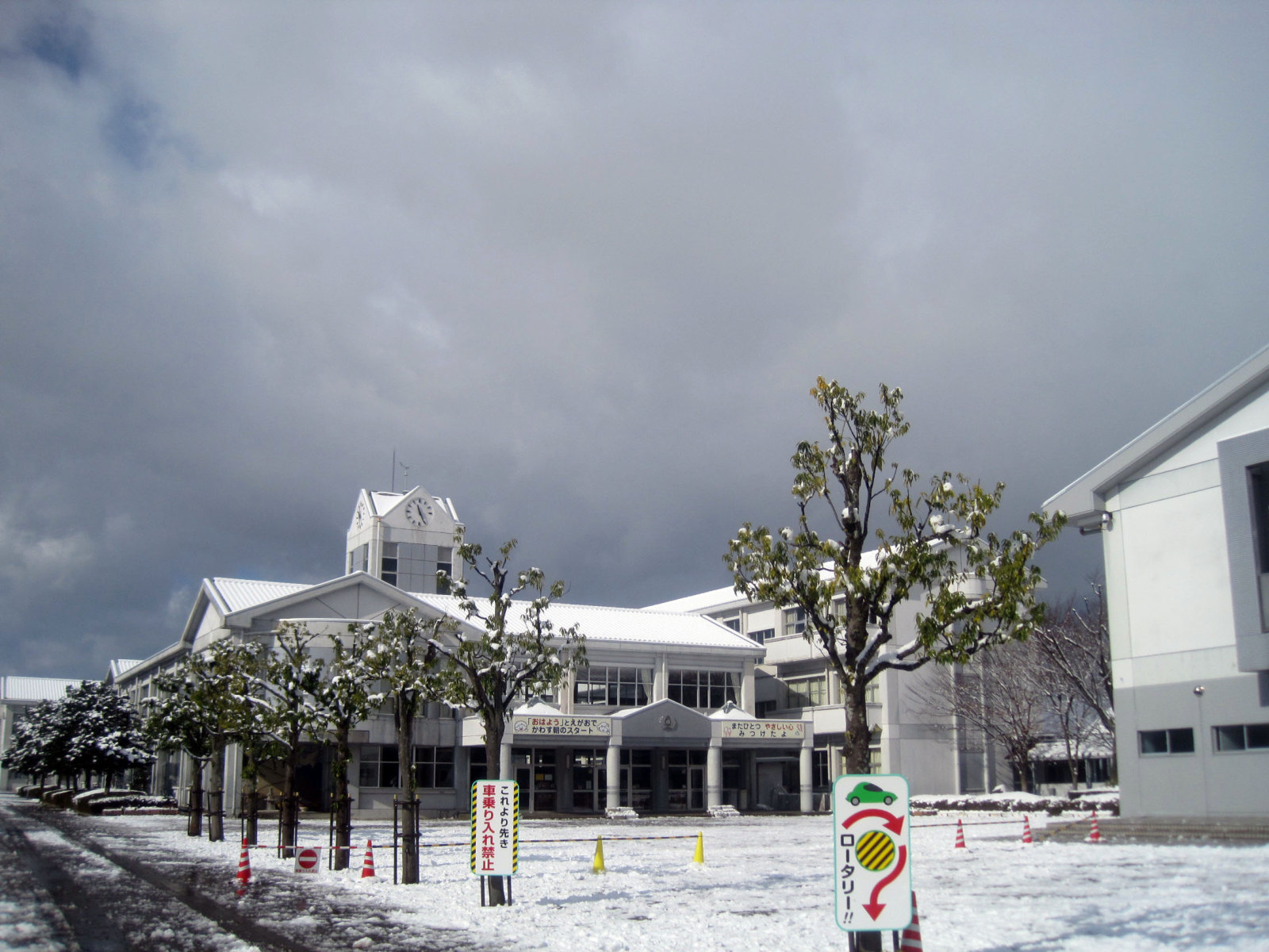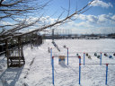 まだまだ,時間があるので・・・雪景色の田畑を抜けて,小学校をかすめて・・・向かいましょう!