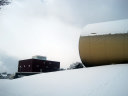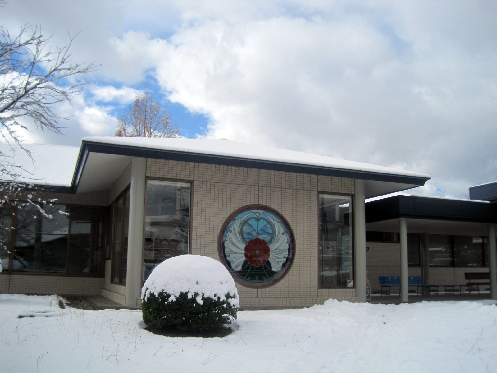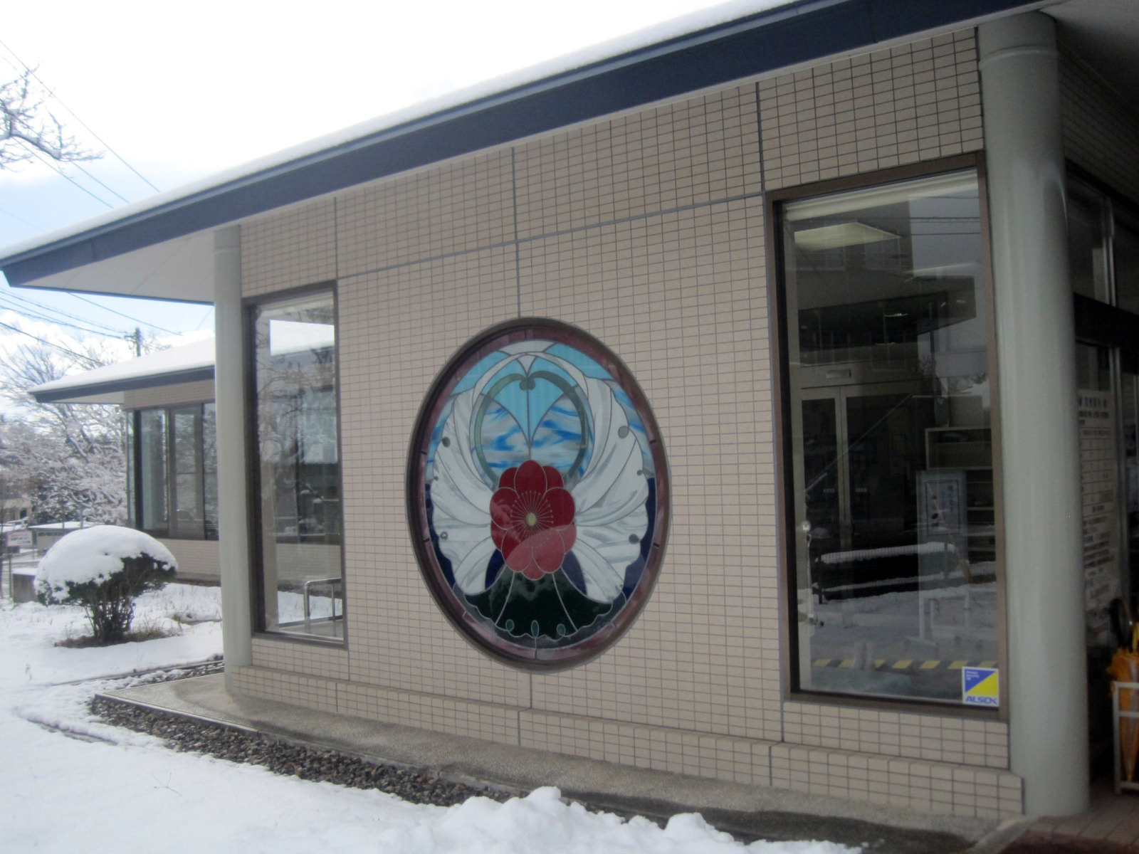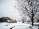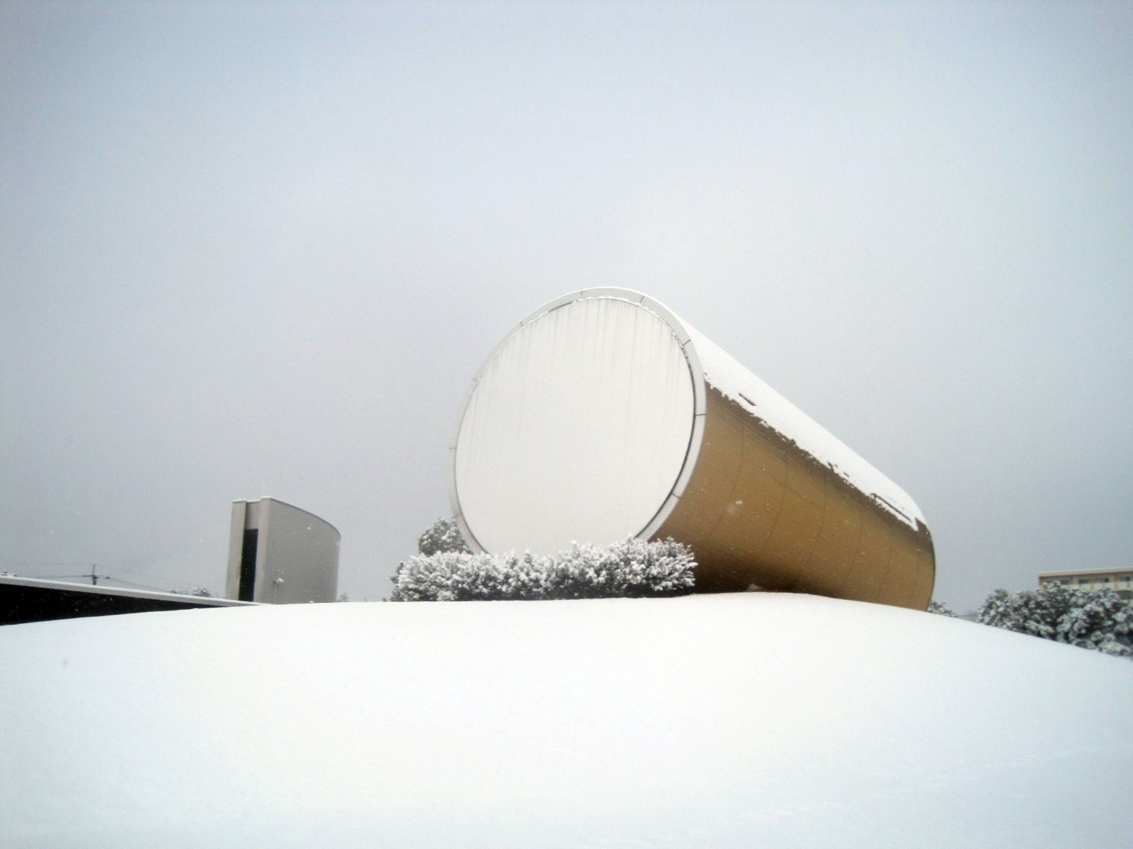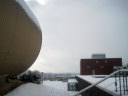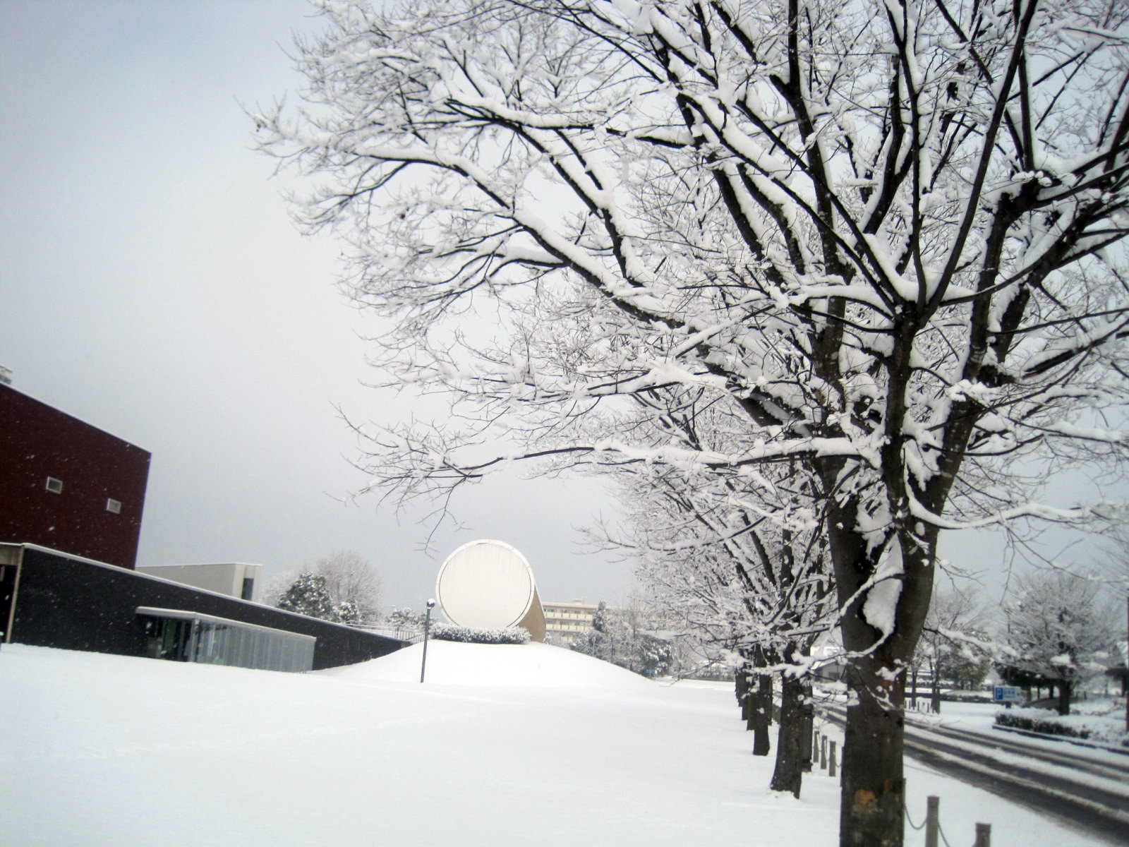 奈義現代美術館前で降車! う〜ん,ざっくりと深い雪です。
