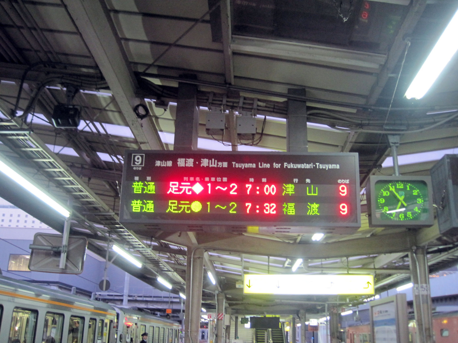 さて,出発はまだ未明の中庄駅,そして岡山駅で9番ホームへ! |