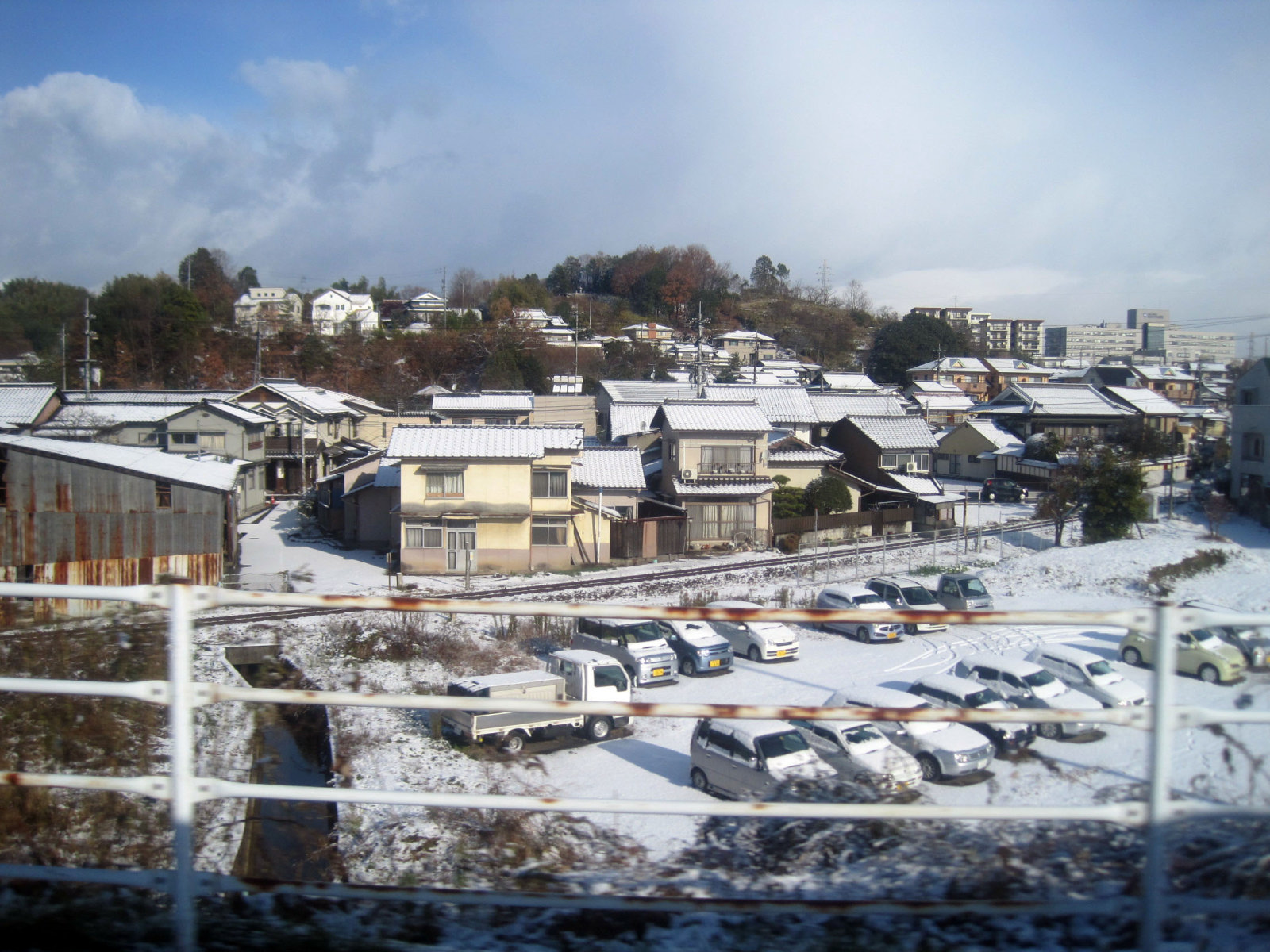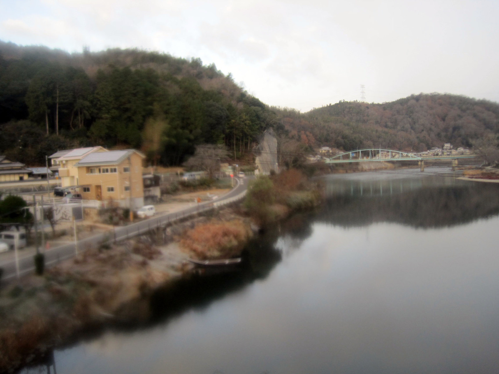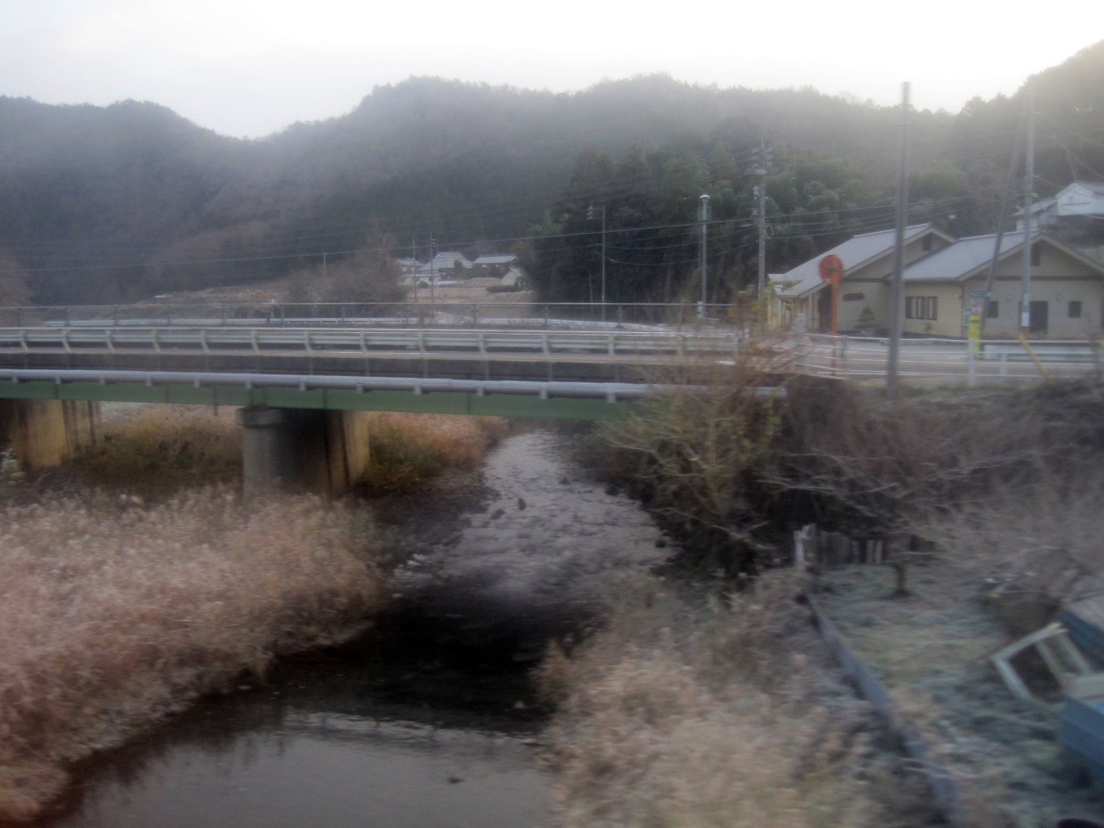 当初は,こんなに降っているとは思わず,車窓を楽しんでいました。建部から福渡で旭川を渡り・・・福渡を過ぎると旭川とはサヨナラして・・