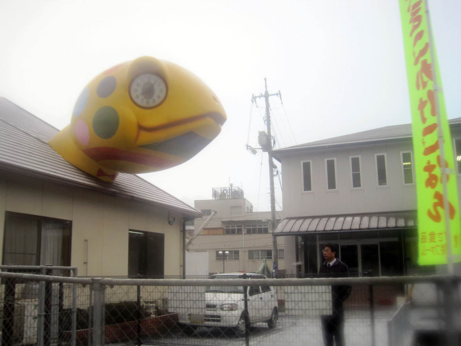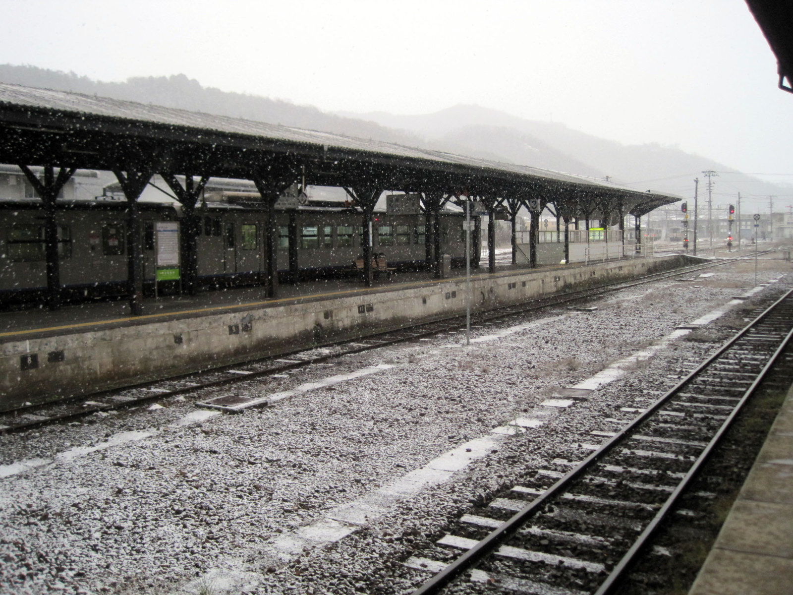 ところが,久米南町に入った辺りから・・雪景色がチラホラと・・・弓削の駅では(上記の動画のように)降っていました。