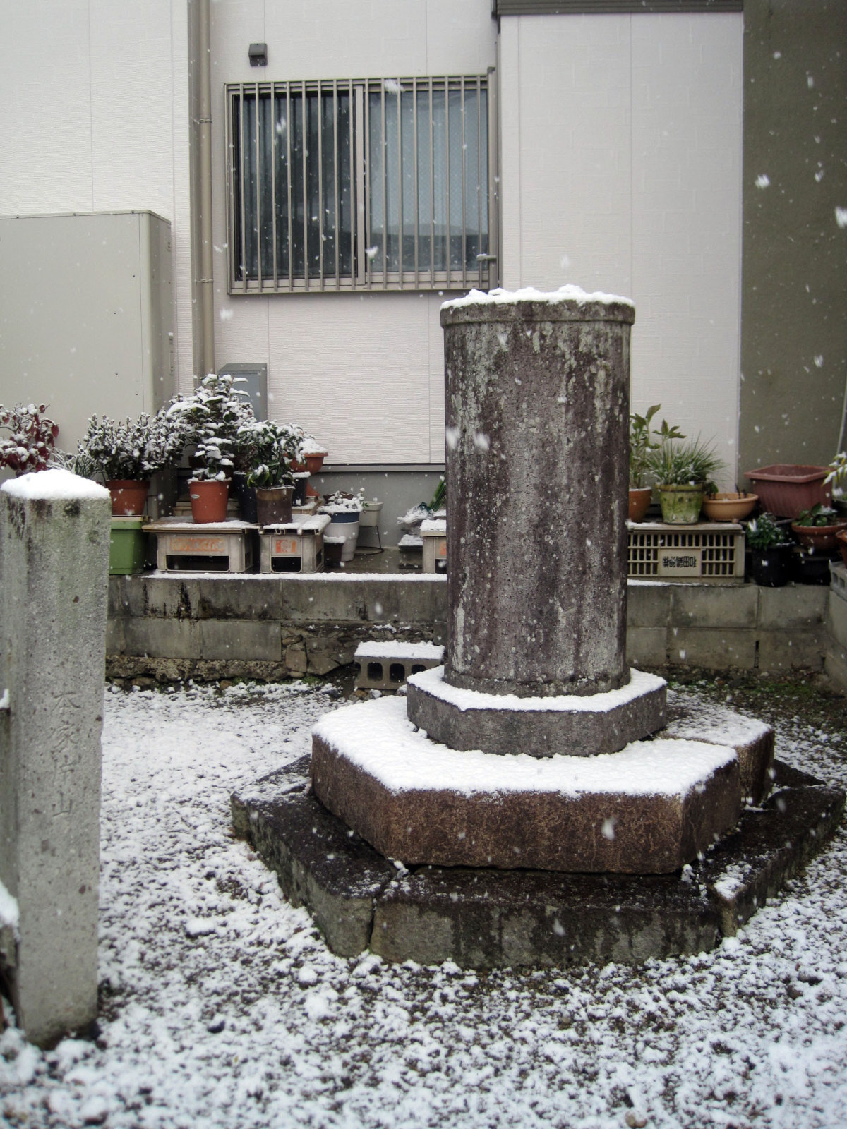 この辺りは,白壁の蔵のあるお宅が多いですね,それと,お墓が点在しています。