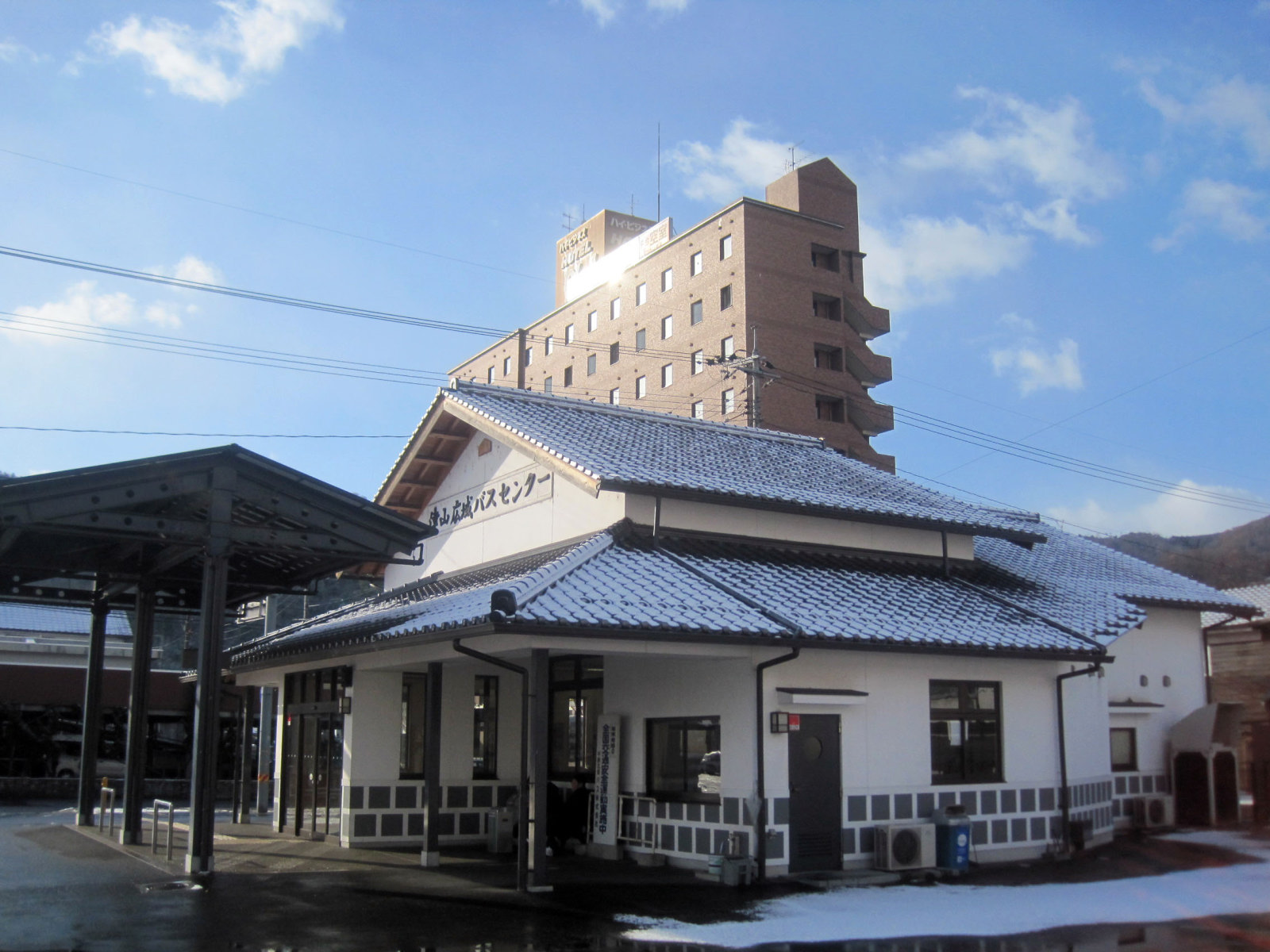 以前の勝北町の役場(今は津山市)・・・辺りを過ぎると,冬用タイヤ着用とのこと!
