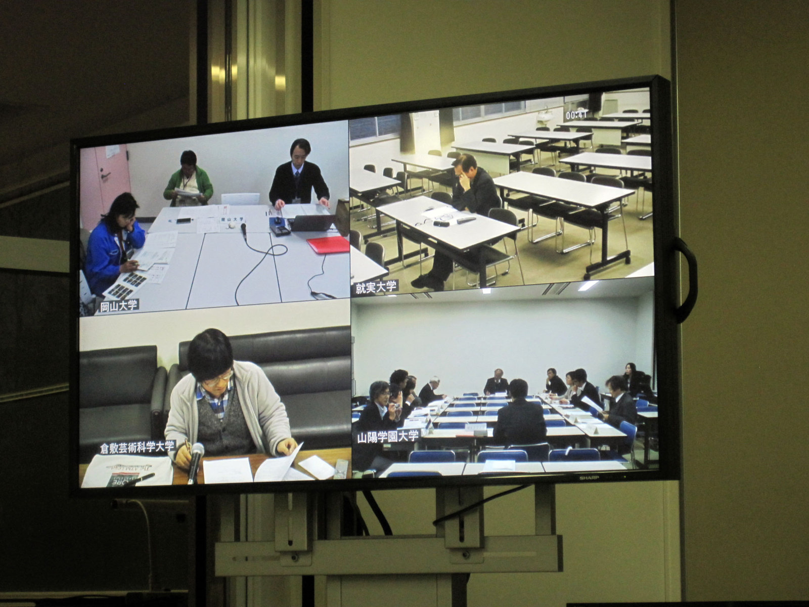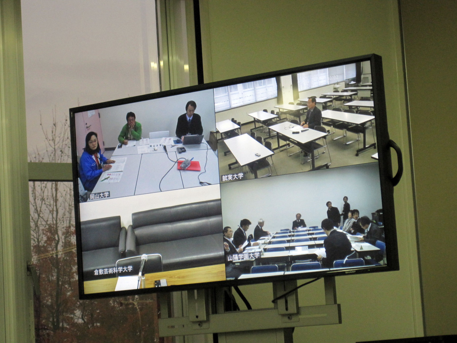 TV会議システムでも岡大・就実・倉敷芸術科学大学さんが参加です。