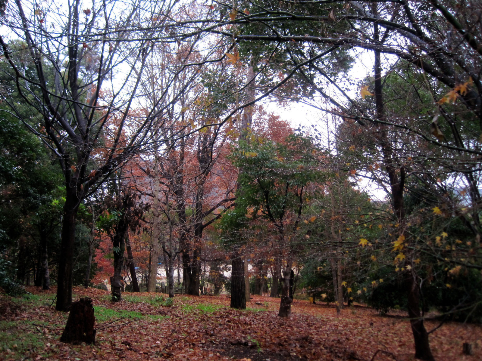 雨上がりの冬の公園で・・・落葉が広がっています。