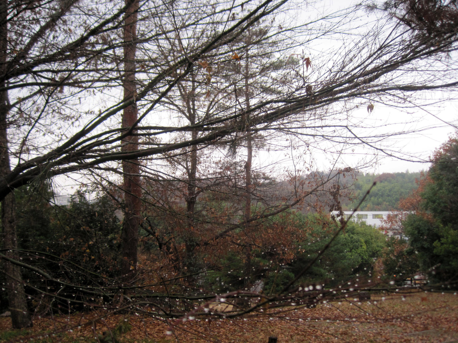 少し木々にも雨滴が残っていて・・・でも,さぁ,会議に向かいましょう,路面がまだ濡れているので,気をつけて!