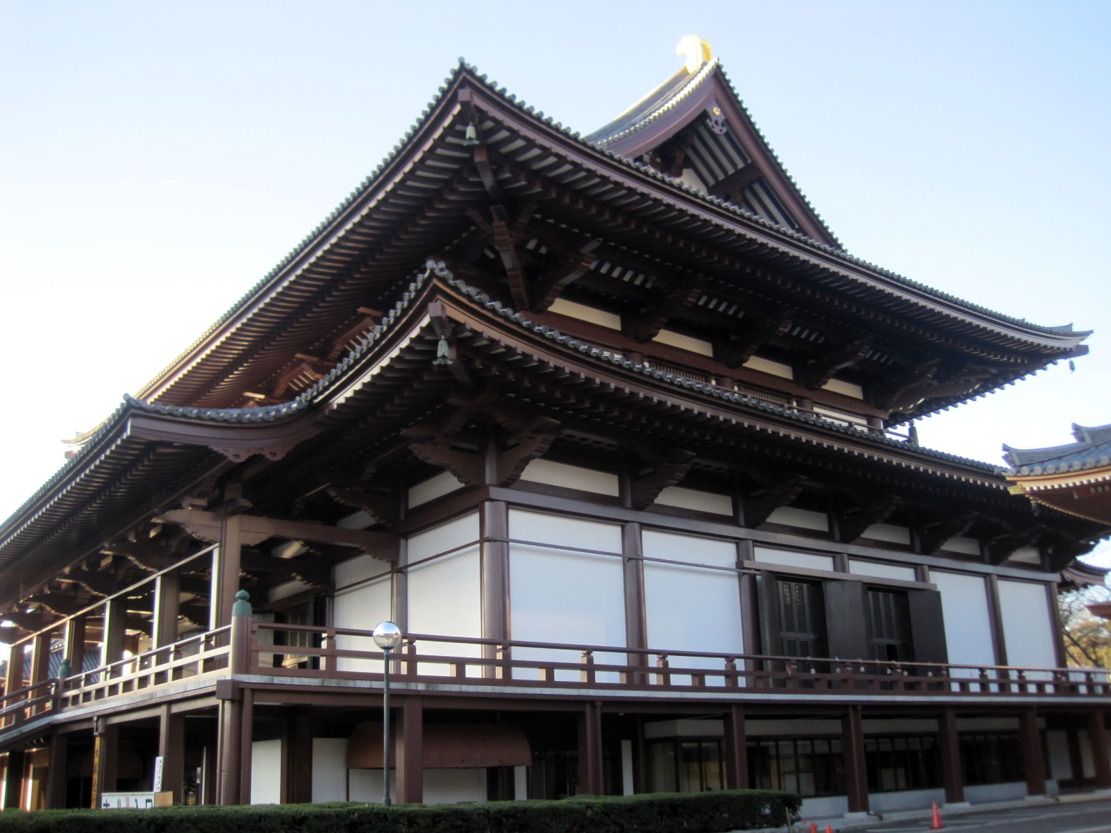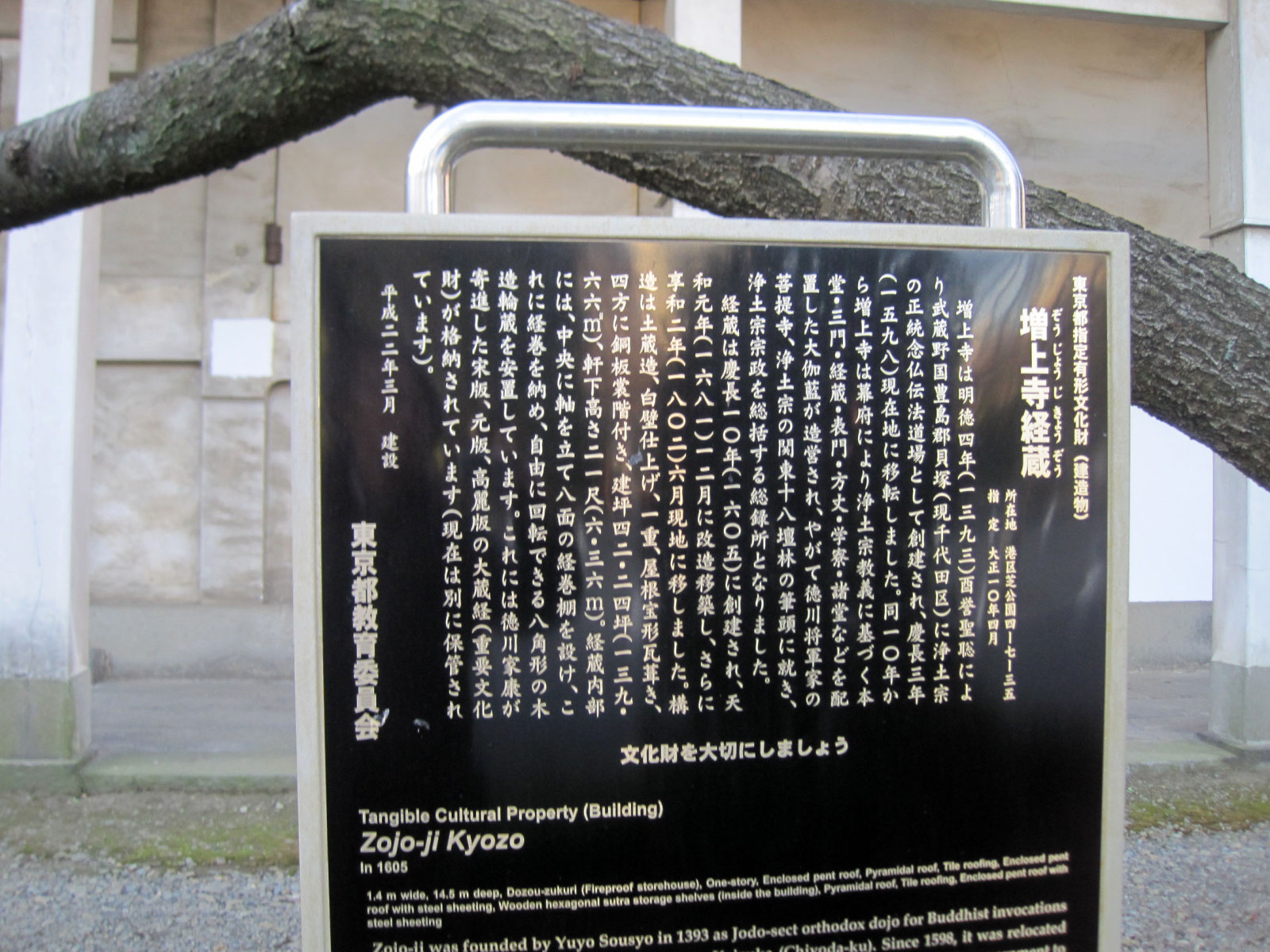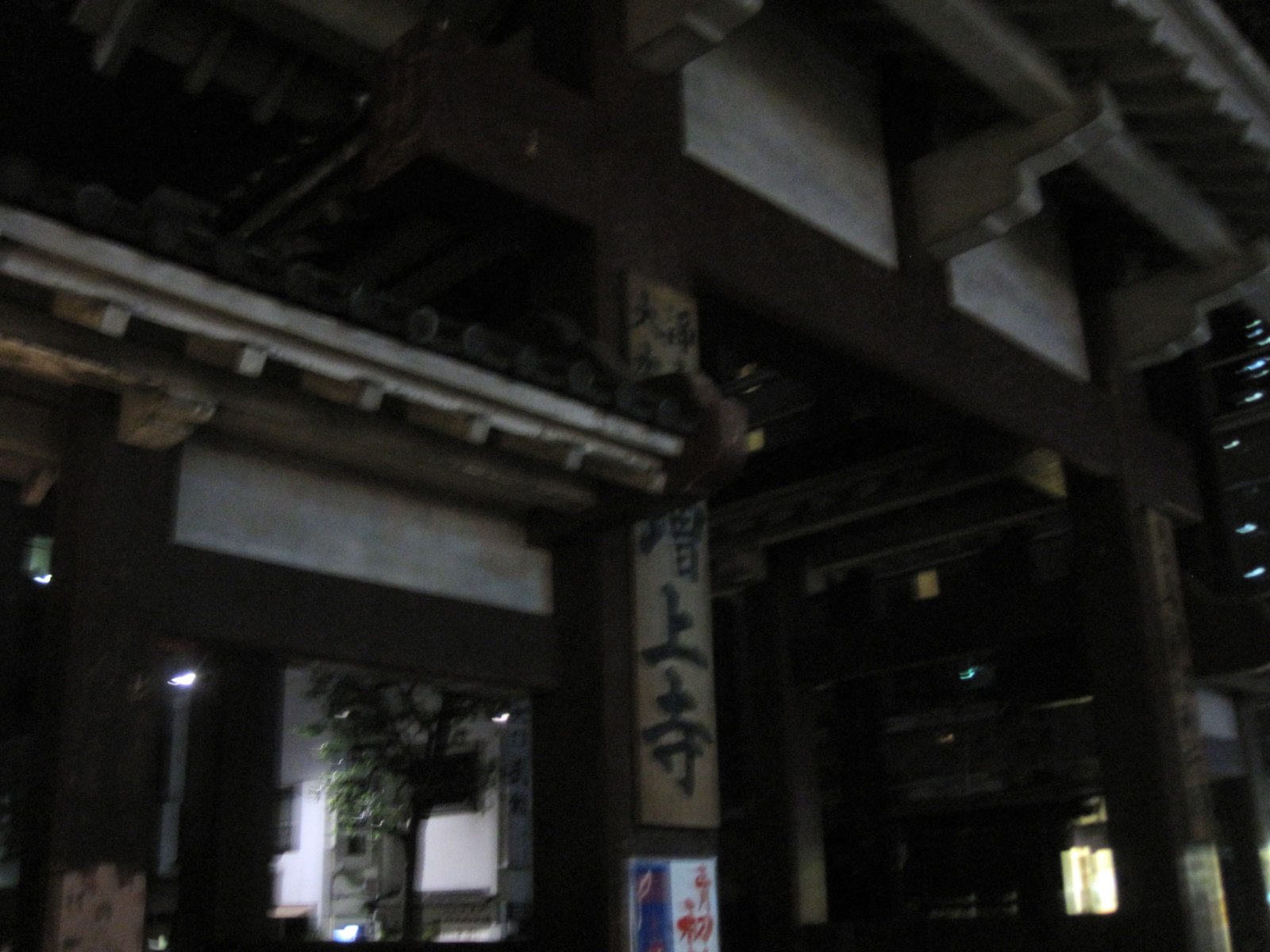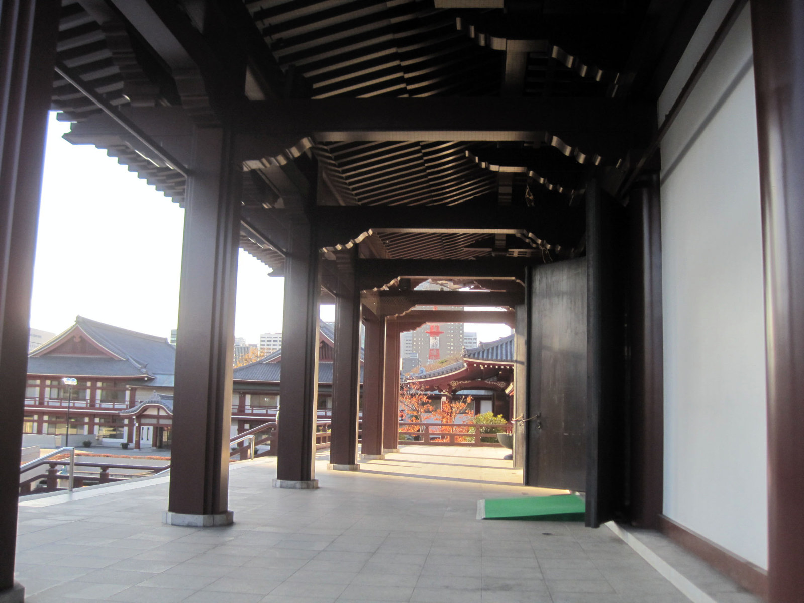 増上寺【空海の弟子・宗叡が武蔵国貝塚(今の千代田区麹町・紀尾井町あたり)に建立した光明寺が増上寺の前身だという。その後、室町時代の明徳4年(1393年)、酉誉聖聡(ゆうよしょうそう)の時、真言宗から浄土宗に改宗した。この聖聡が、実質上の開基といえる。中世以降、徳川家の菩提寺となるまでの歴史は必ずしも明らかでないが、通説では天正18年(1590年)、徳川家康が江戸入府の折、たまたま増上寺の前を通りかかり、源誉存応上人と対面したのが菩提寺となるきっかけだったという。貝塚から、一時日比谷へ移った増上寺は、江戸城の拡張に伴い、慶長3年(1598年)、家康によって現在地の芝へ移された。風水学的には、寛永寺を江戸の鬼門である上野に配し、裏鬼門の芝の抑えに増上寺を移したものと考えられる。また、徳川家の菩提寺であるとともに、檀林(学問所及び養成所)がおかれ、関東十八檀林の筆頭となった。なお、延宝8年(1680年)6月24日に行われた将軍徳川家綱の法要の際、奉行の一人で志摩国鳥羽藩主内藤忠勝が、同じ奉行の一人で丹後国宮津藩主永井尚長に斬りつけるという刃傷事件を起こしている(芝増上寺の刃傷事件)。なお水戸黄門第17部においては、この一件が水戸光圀の旅立ちのきっかけとして描かれている。また元禄14年(1701年)3月に江戸下向した勅使が増上寺を参詣するのをめぐって畳替えをしなければならないところ、高家の吉良義央が勅使饗応役の浅野長矩に畳替えの必要性を教えず、これが3月14日の殿中刃傷の引き金になったという逸話が『忠臣蔵』で有名である。なお、長矩は内藤忠勝の甥である。明治時代には半官半民の神仏共同教導職養成機関である大教院の本部となり大教院神殿が置かれた。のち明治7年(1874年)1月1日排仏主義者により放火される。徳川幕府の崩壊、明治維新後の神仏分離の影響により規模は縮小し、境内の広範囲が芝公園となる。太平洋戦争中の空襲によって徳川家霊廟、五重塔をはじめとした遺構を失う大きな被害を受けた。東京タワーの建設時、増上寺は墓地の一部を土地として提供している。なお、この付近の町名(芝大門)や地下鉄の駅名(大門駅)に使われている「大門」(だいもん)は、増上寺の総門のことを指す。現在の総門は昭和12年に作られた、コンクリート造のものである。】ということです。