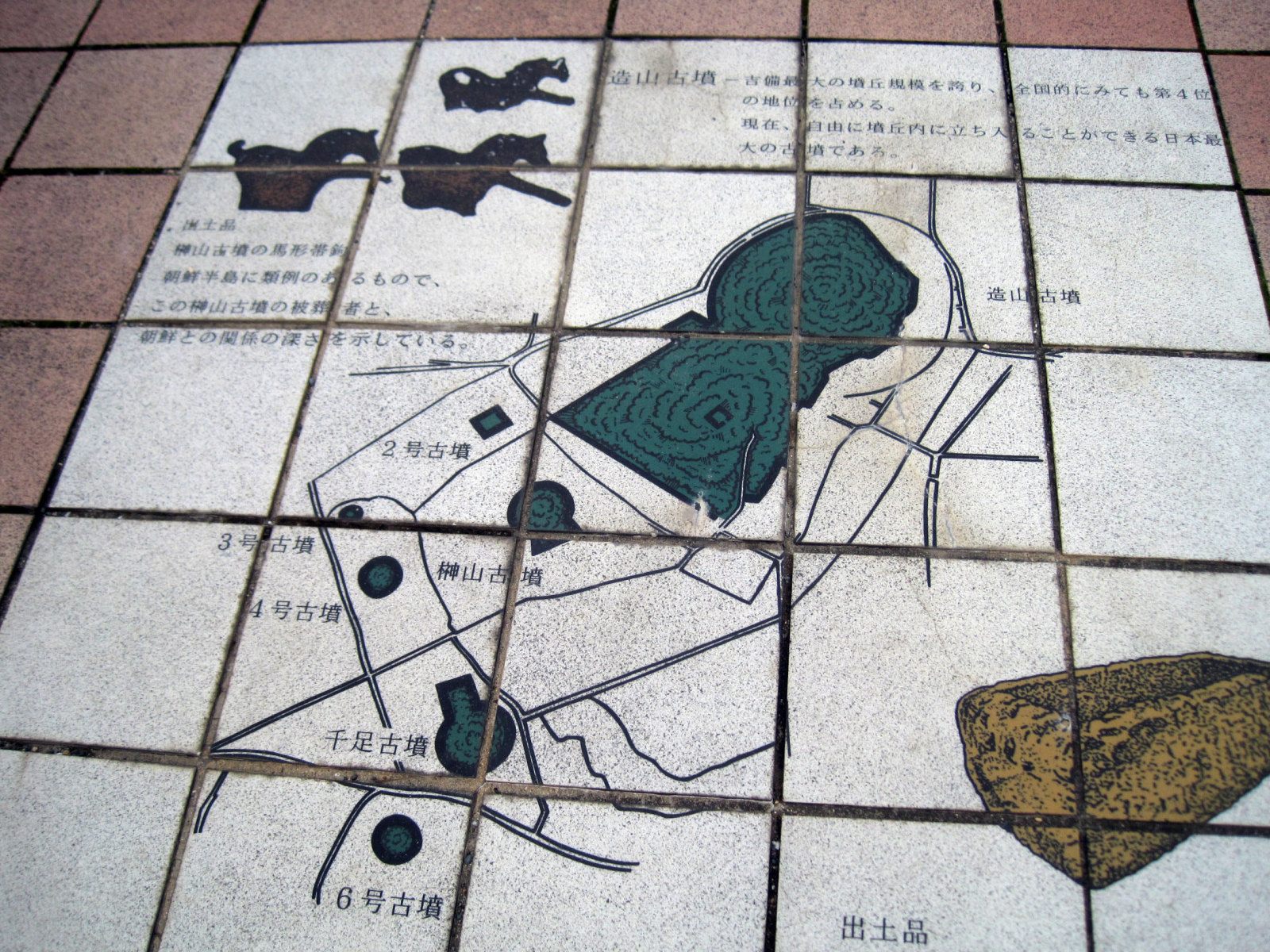 【墳丘の長さでは、全国第4位であり、墳丘に立ち入りできる古墳としては日本最大である。1921年(大正10年)、陪塚とされる中小古墳6基とともに国の史跡に指定されている。墳丘の長さ約350メートル、後円部復元径約190メートル、後円部高さ約29メートル、前方部幅215メートル、高さ25メートル、前方部の頂が壇状の高まりになり、三段築成の墳丘をもつ超巨大古墳で、岡山県では1位、全国では大仙陵古墳(約486メートル)、誉田御廟山古墳(約420メートル)、上石津ミサンザイ古墳(約360メートル)につぐ4番目の大きさである。周囲には榊山古墳(造山第1号墳)や千足装飾古墳(造山第5号墳)など6基の陪塚がある。現在に至るまで、本格的な学術調査が行われておらず、内部は未発掘である。特徴として、墳丘の長さに対して後円部の割合が大きいことが挙げられる。大きさから古代吉備にヤマト王権に対抗しうる、または、拮抗した強力な王権(吉備政権)があったとする見解もある。一方で、吉備の首長ではなく、中央の大和王権が造った古墳であり、その被葬者も倭王の一人ではないかと見ている研究者もいる。天皇陵に比定されている上位3古墳をはじめ近畿地方の巨大古墳が宮内庁により国民はもちろん学者・専門家も内部への立ち入りが禁止されているのに対し、ここは立ち入り出来る古墳では国内最大のものであり、全国的に見ても貴重である。なお、総社市にも同音の作山古墳(つくりやまこふん)があり、地元では造山古墳は「ぞうざん」、作山古墳は「さくざん」と区別して呼んでいる。墳丘形状・埴輪などから考えて、本古墳の築造時期は5世紀前葉末から中葉はじめ頃と推定されている。】という古代ロマンの真っ只中です。