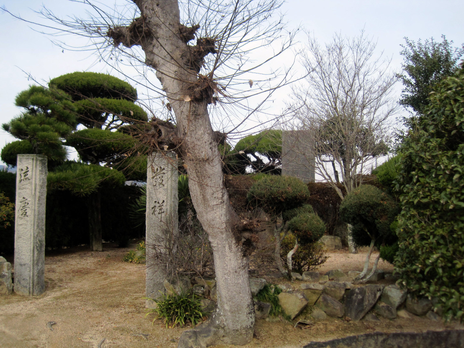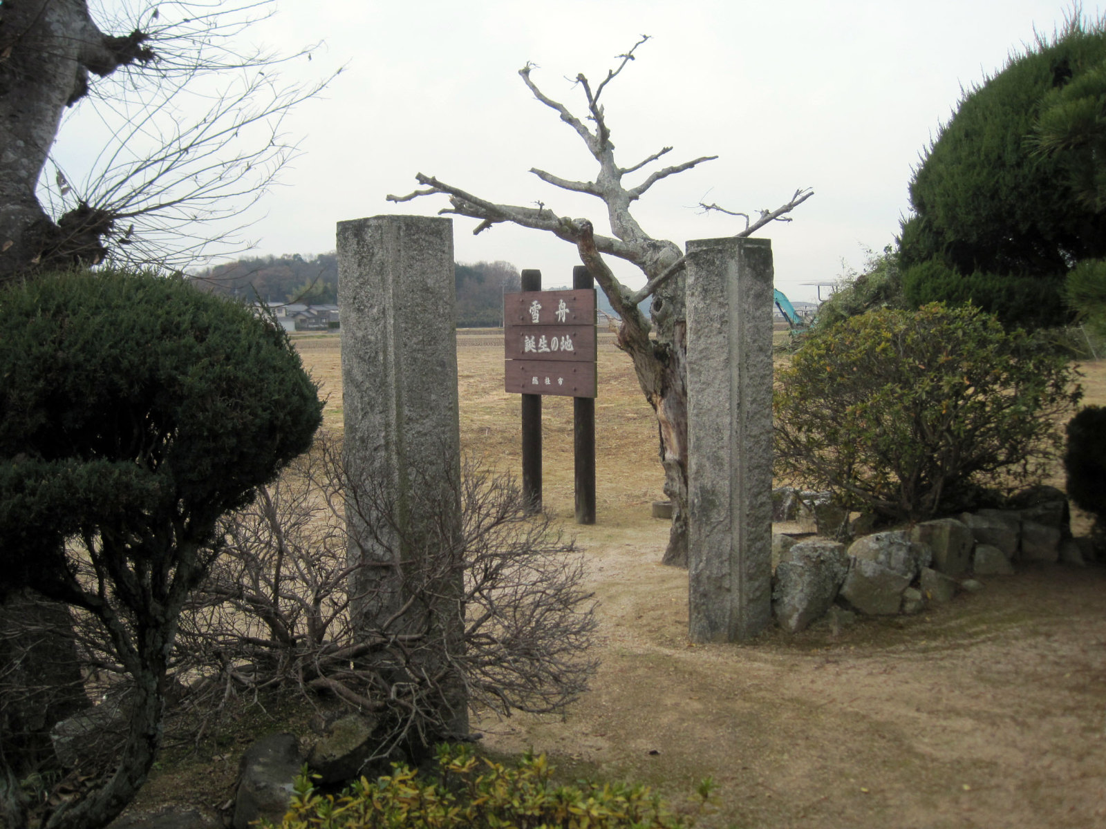 さて,そこから県立大学の方へ・・・なんと雪舟(畫聖)の生誕の地が・・田畑の真ん中に,アクセスの通路もなく残っていました。