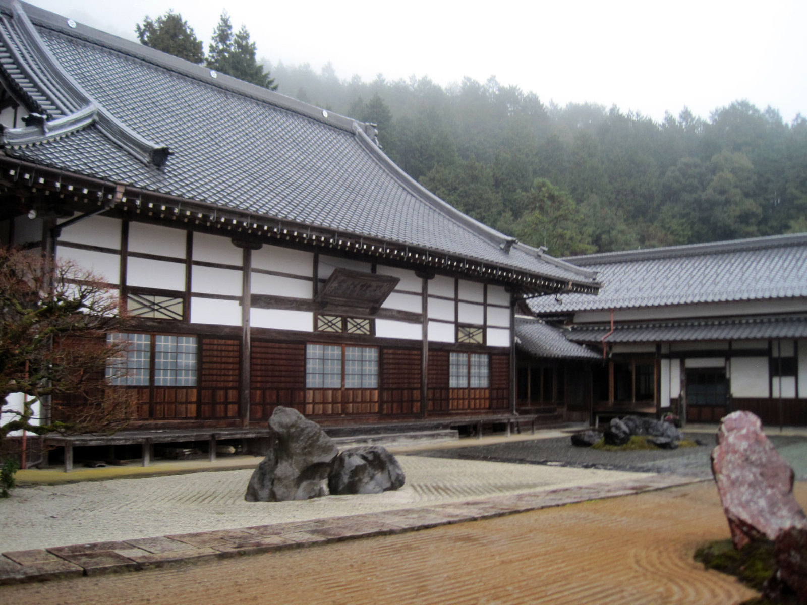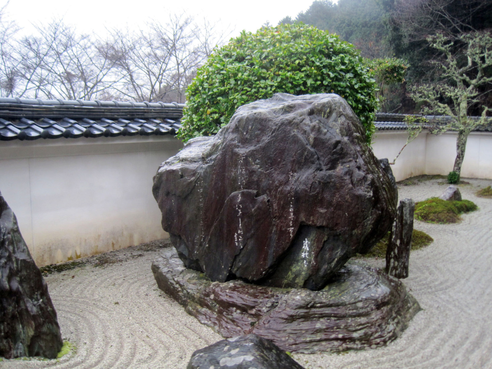 【655年開基と伝わる名刹。慶安元年(1648)に曹洞宗として再興。境内には、重森三玲氏作、青龍、白虎、朱雀、玄武の四神相応の庭があります。また、高浜虚子ゆかりの句碑の庭があるほか、裏山には高さ12m、幅20mにも及ぶ巨大な磐座がそびえています。】だそうです。