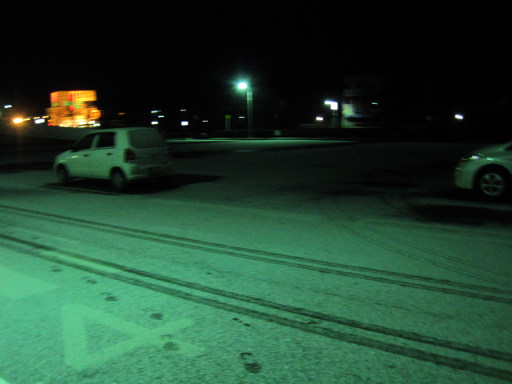 大学の駐車場の辺りも,白くなっていました・・・救急車の進入口も〜〜