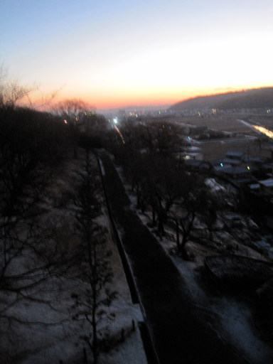2013.1.28. 朝の通勤の時・・・夜の雪が残っています。気を付けて大学へ!