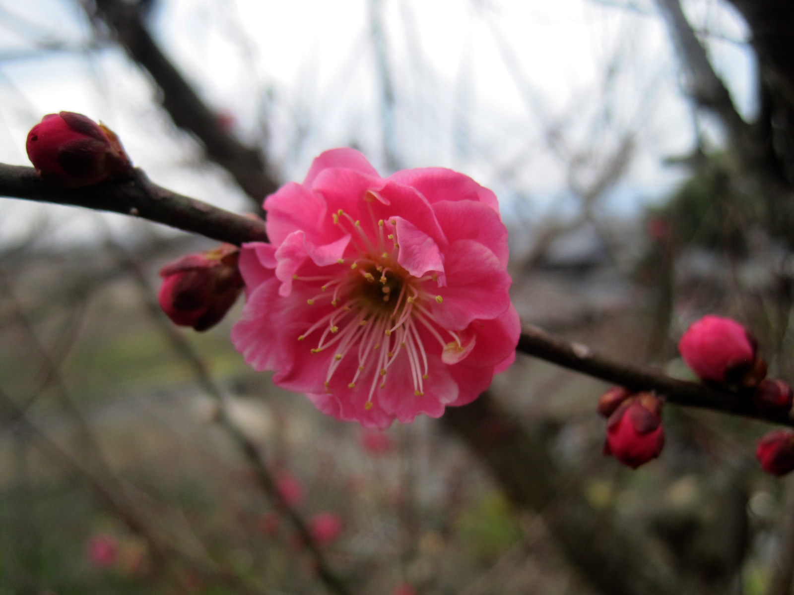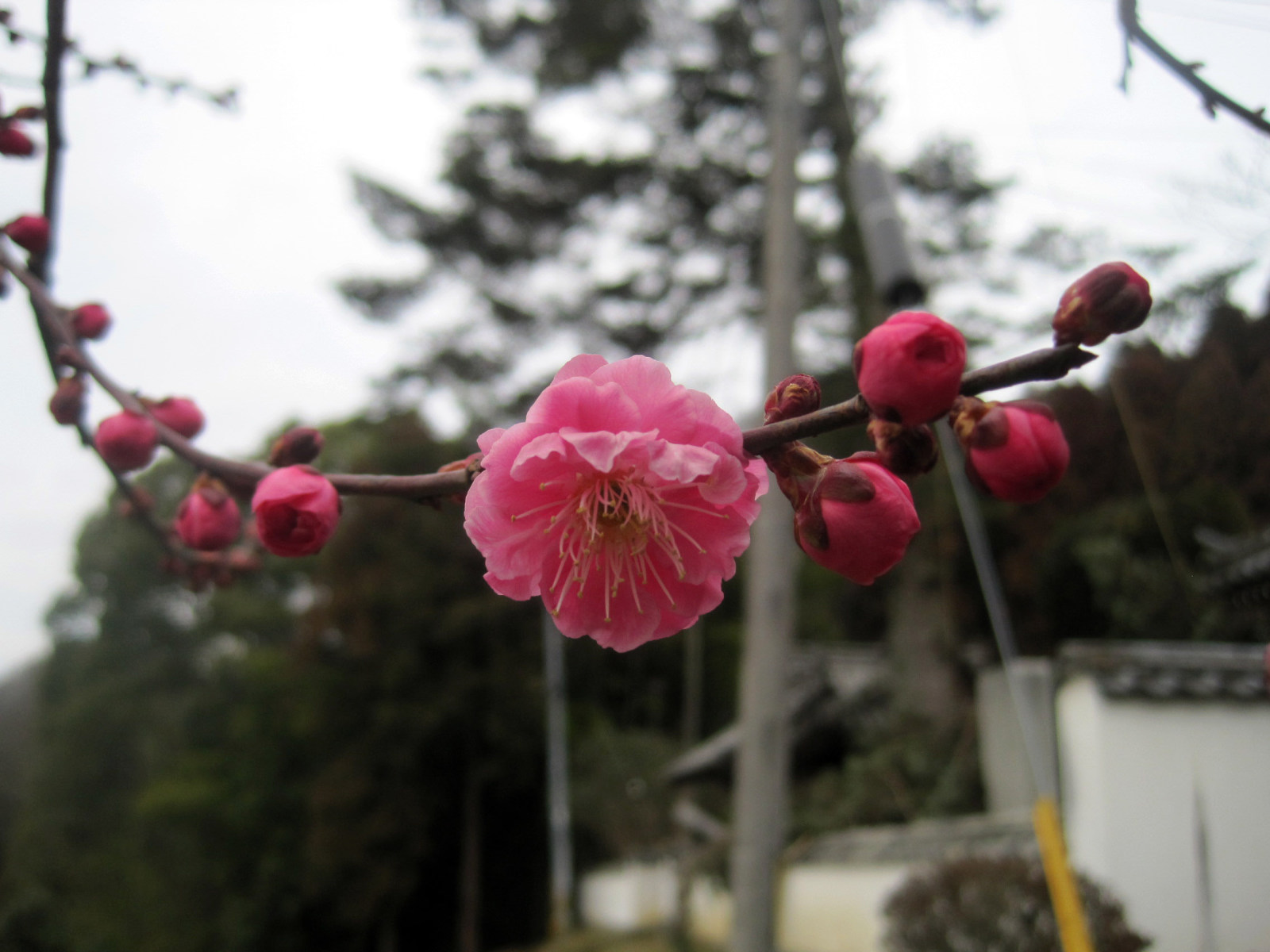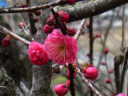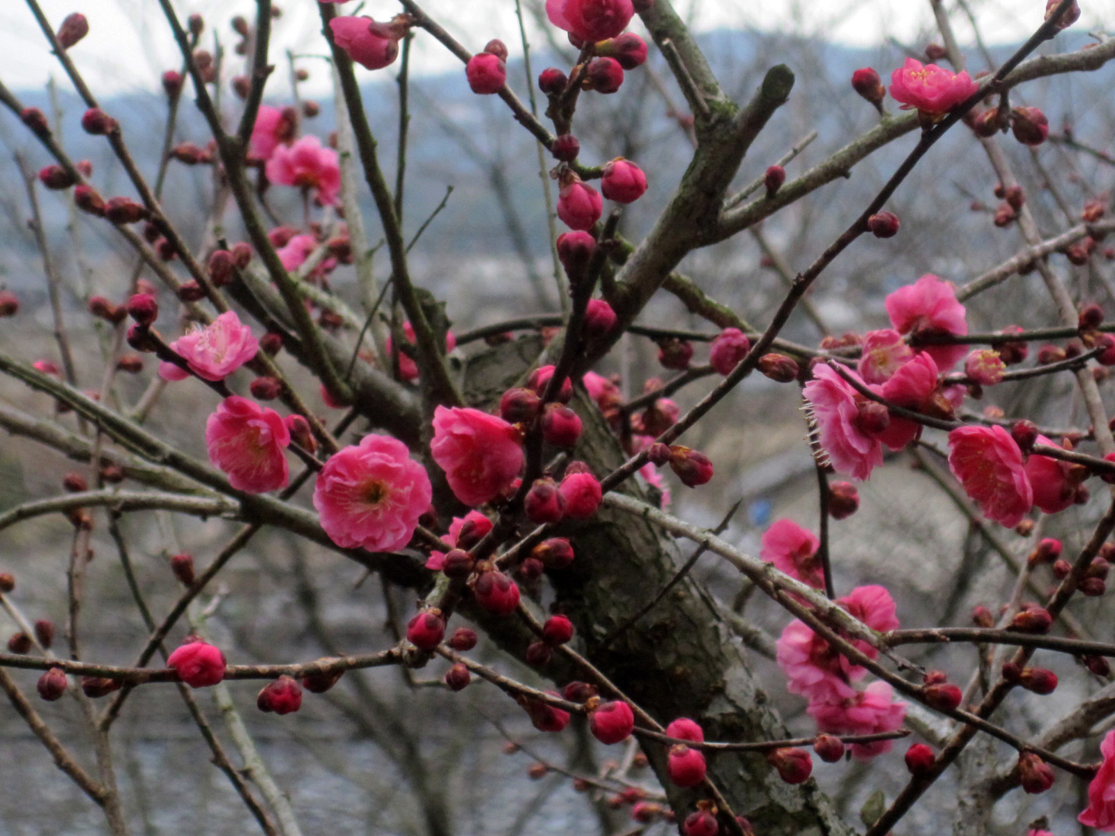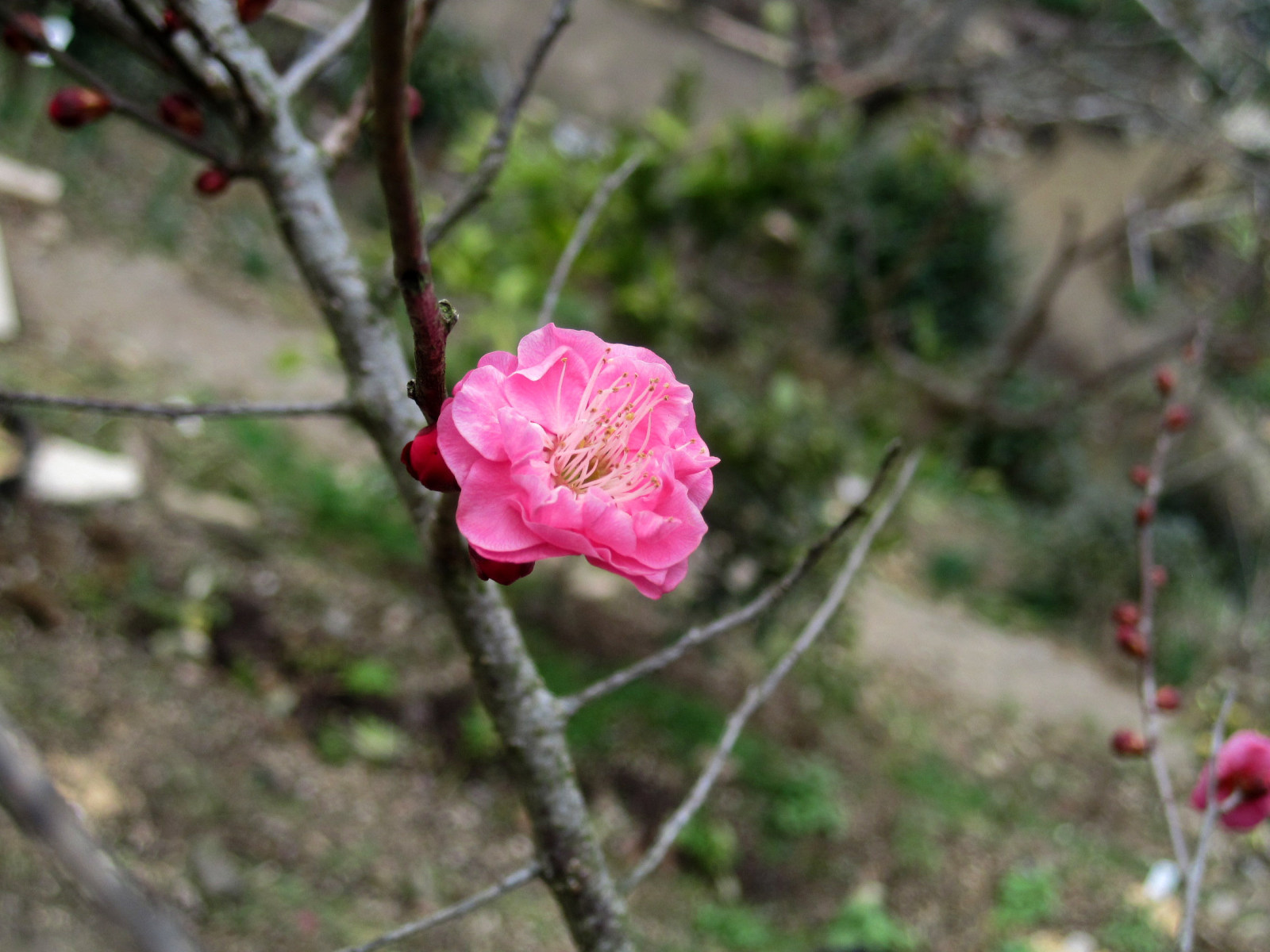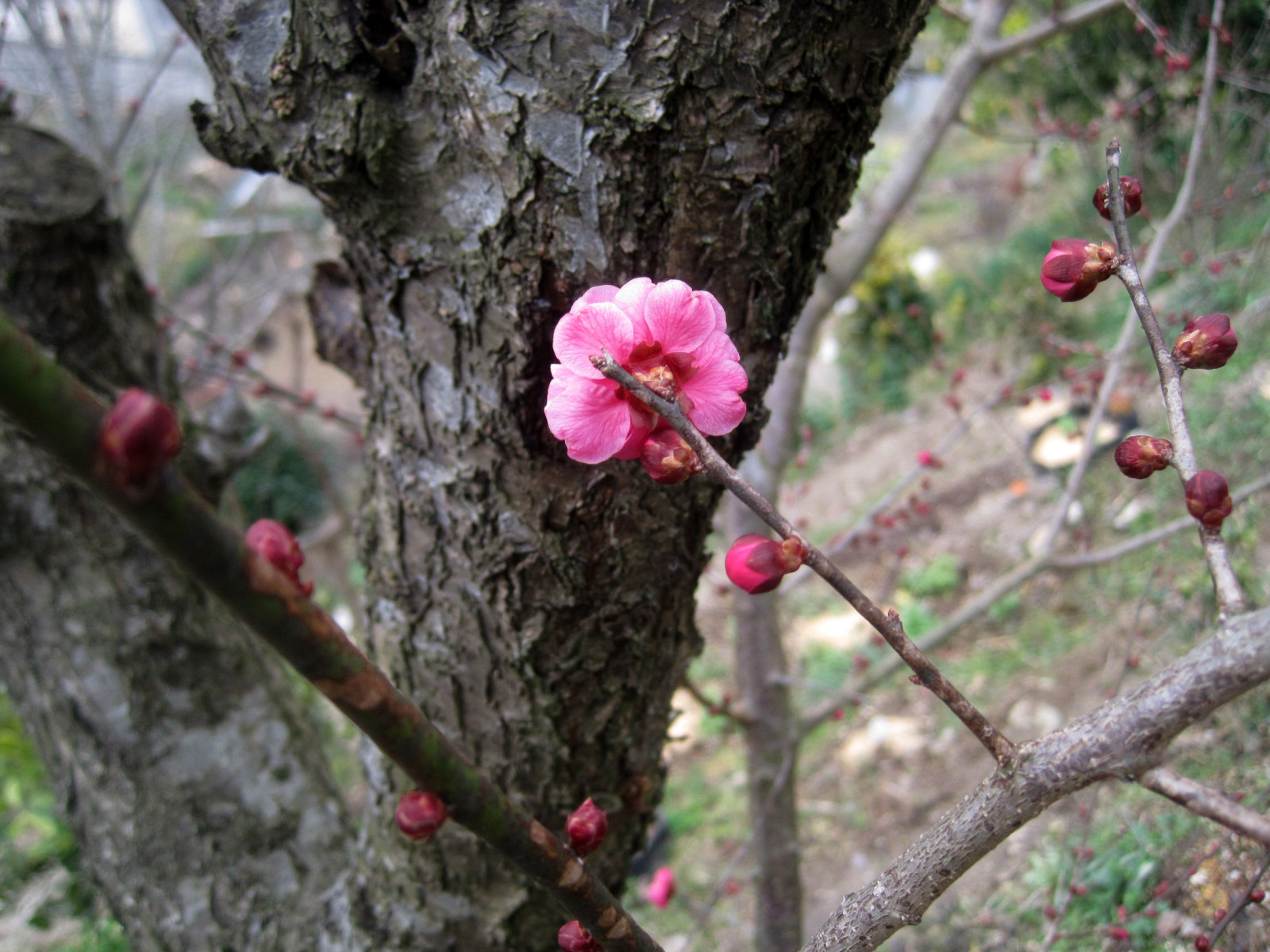 今年は,臘梅も初めてでした・・と,思えば,紅梅が・・・ここは西日が当たりやすいのか,よく開いています。