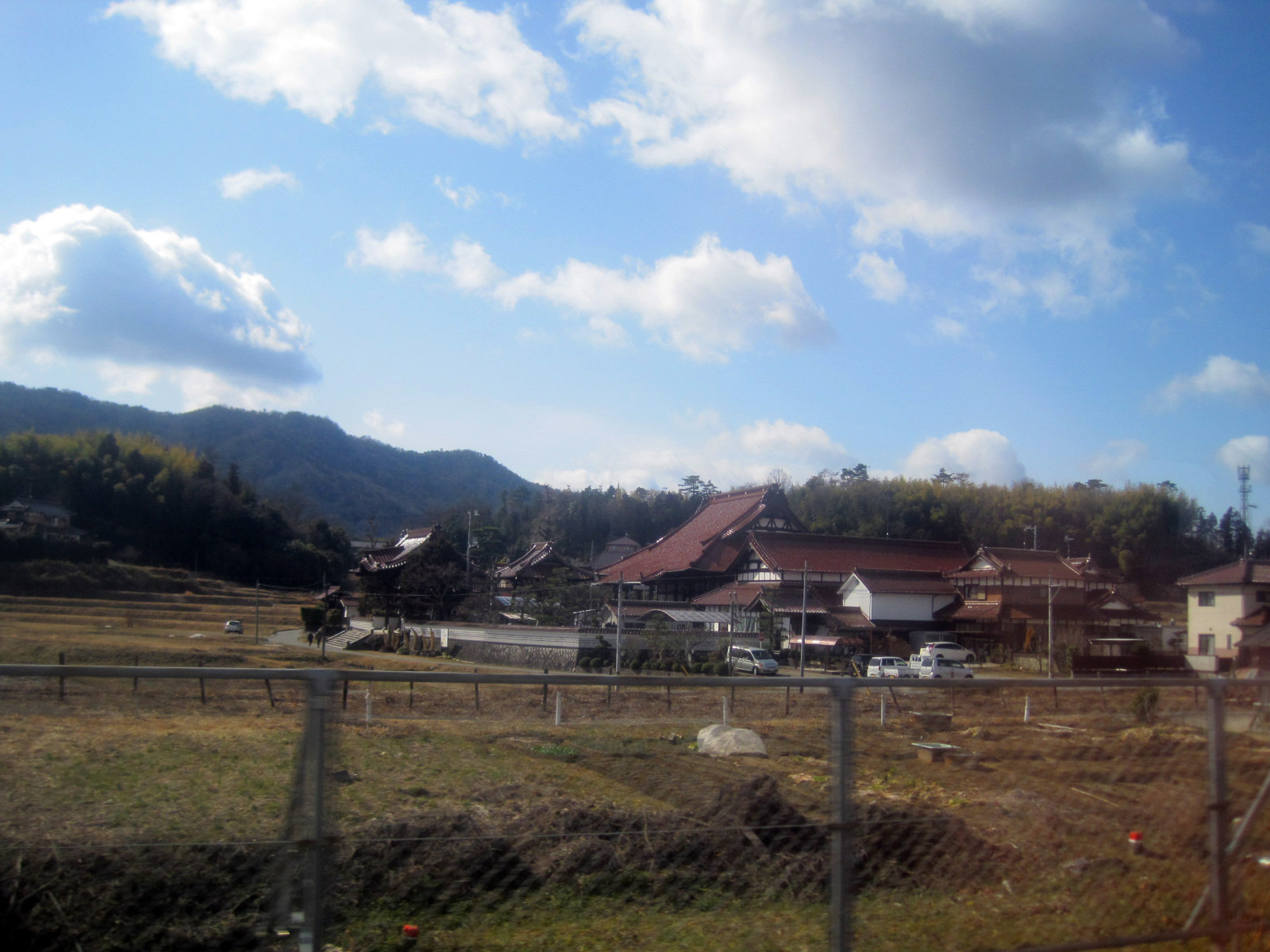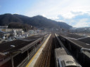 本郷から河内までは,結構,長い距離,駅がありませんが,広島空港の近く,山陽自動車道の高い橋梁が見えます。