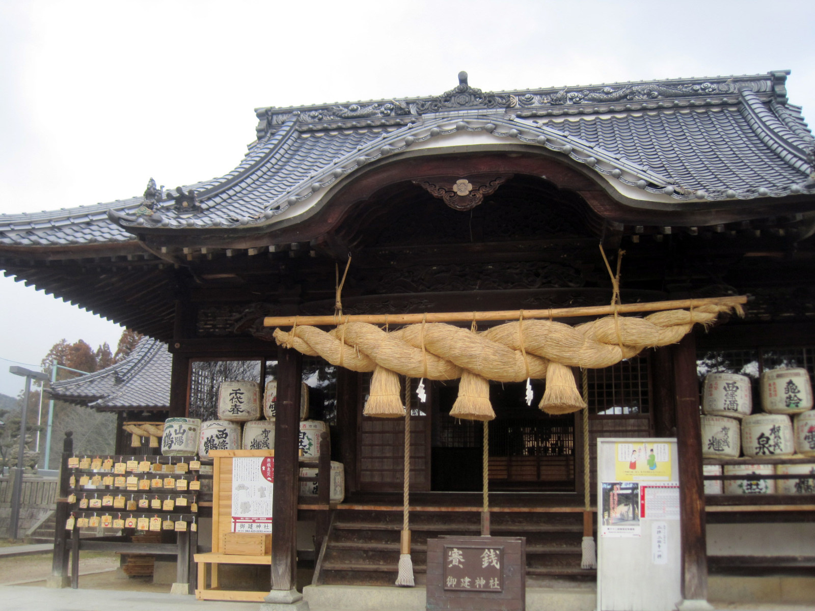 【706年諸国に疫病が流行した時に素戔嗚尊に祈り疫病が止んだ事から当時の人々が社を建てて祀ったのが当社の起こりと伝えられている。御建(みたて)の名の由来は安芸国の国府があった時代に国府の建物を御建(みたち)と呼んだことからと伝えれている。昭和初年に山城伏見の松尾神社の分霊を境内に勧請し酒の守護神としても親しまれるようになった。】だそうです。