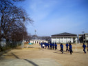 一応,坂道を一番上まで昇ると・・・グランドでは,体育の授業??