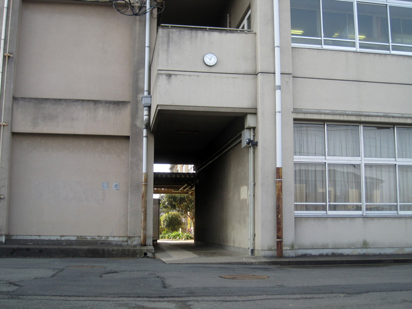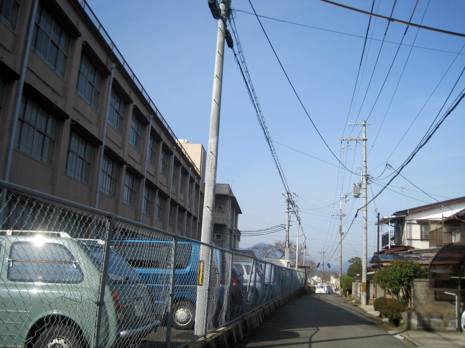 この上まで昇ると校門まで遠回りになるので,校舎脇の写真の細い道を通学していました。陸上部の練習で,よくこの「坂道上り」をさせられました・・・当時は,未舗装だったような〜〜〜