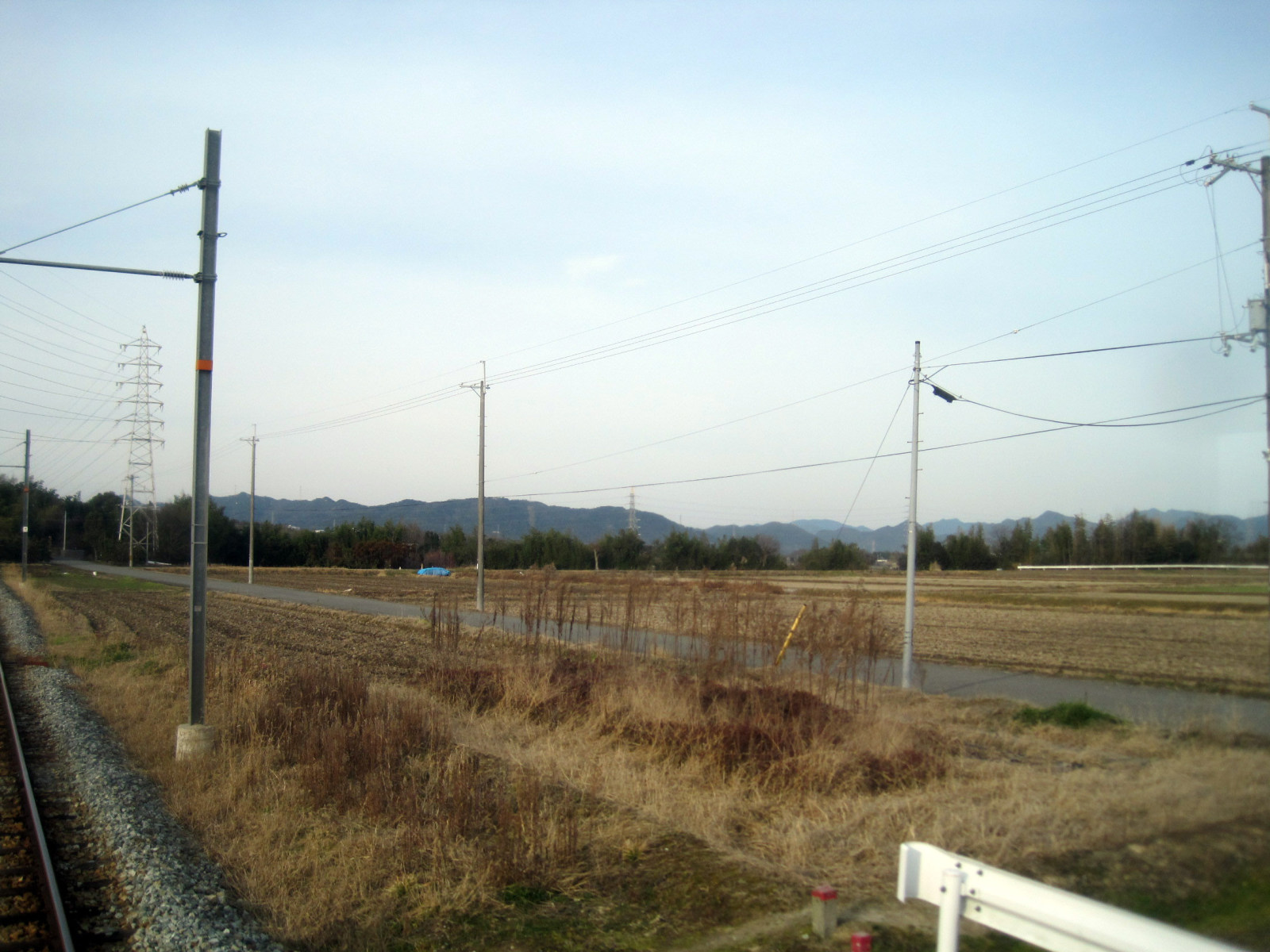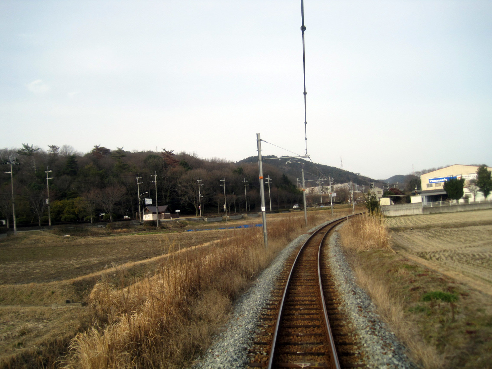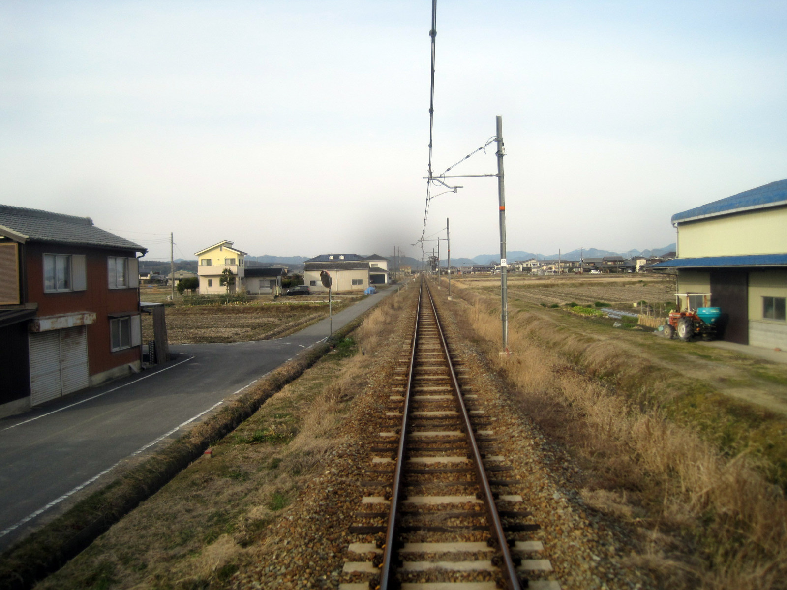 ここで乗り換えましたが,二両連結の最後尾・・・車掌さんとかが居る場所にたちましたので・・・行き過ぎる景色を撮影しました。