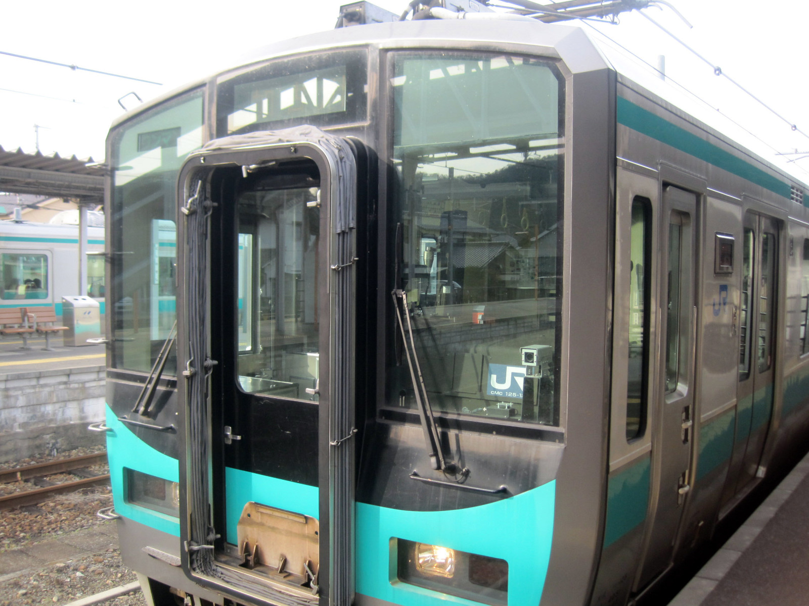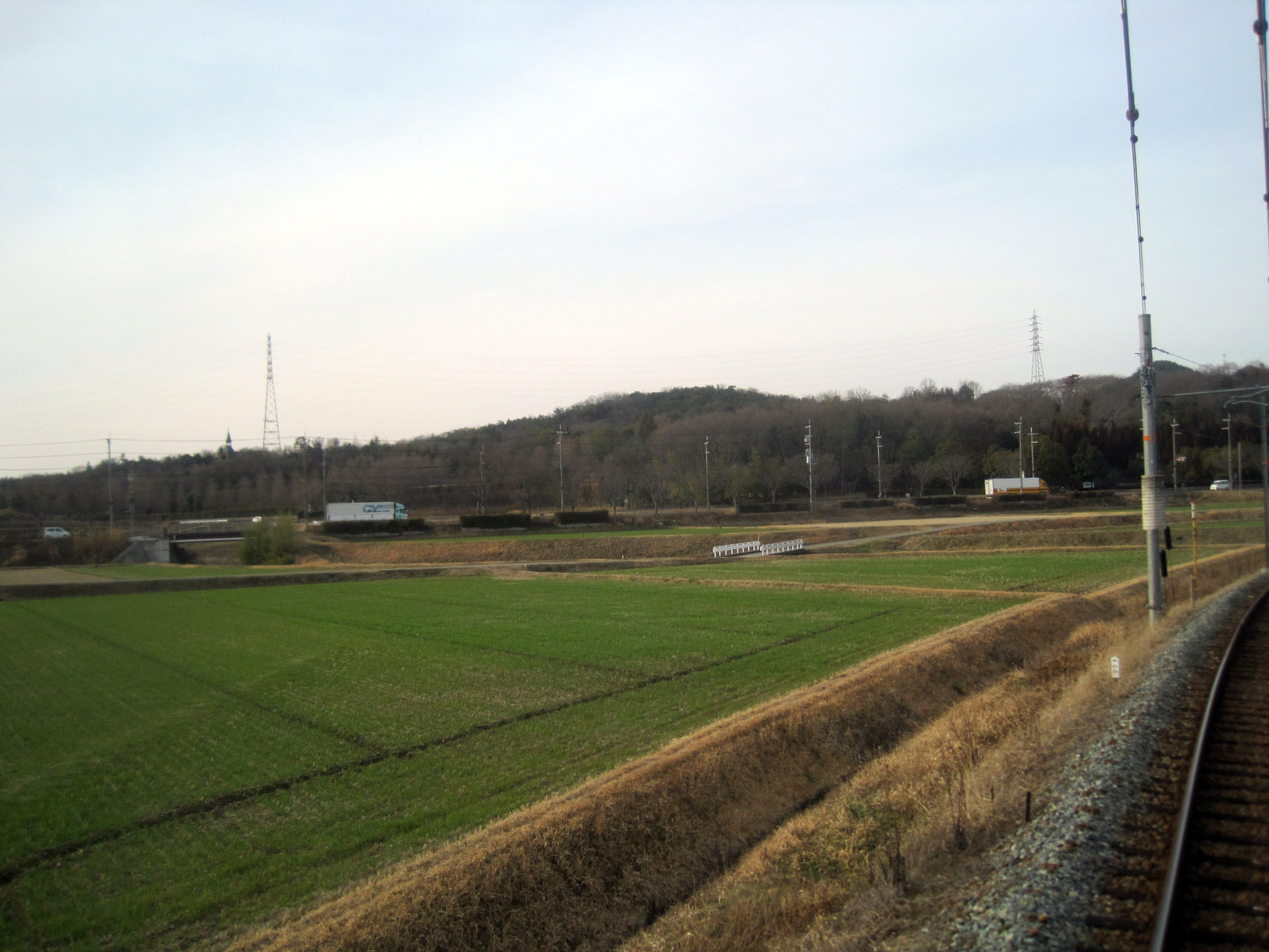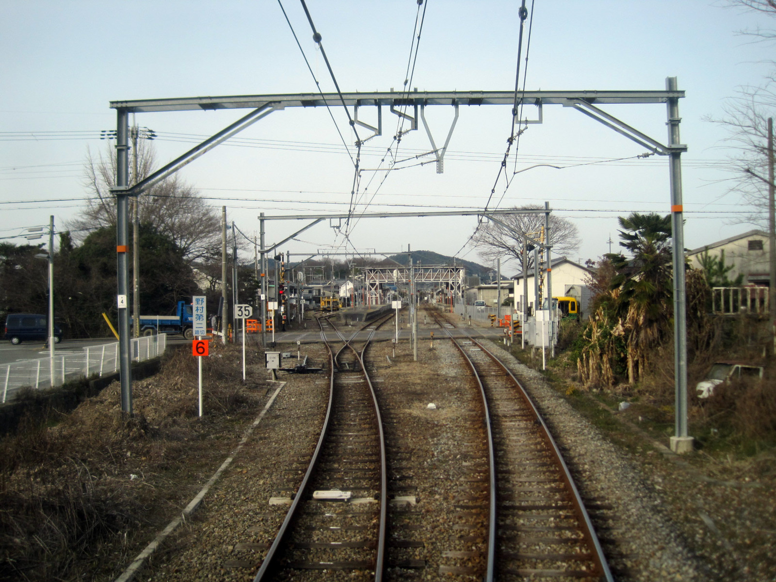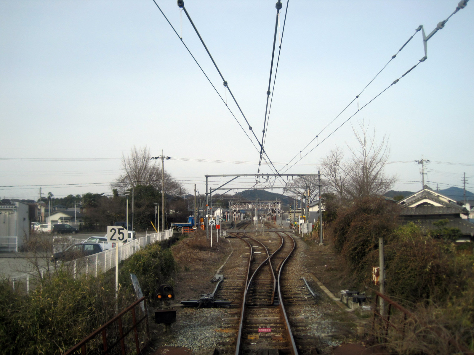 ここで乗り換えましたが,二両連結の最後尾・・・車掌さんとかが居る場所にたちましたので・・・行き過ぎる景色を撮影しました。