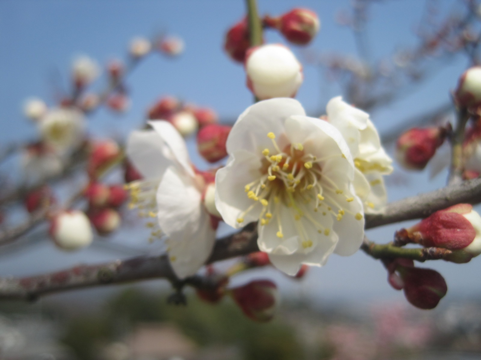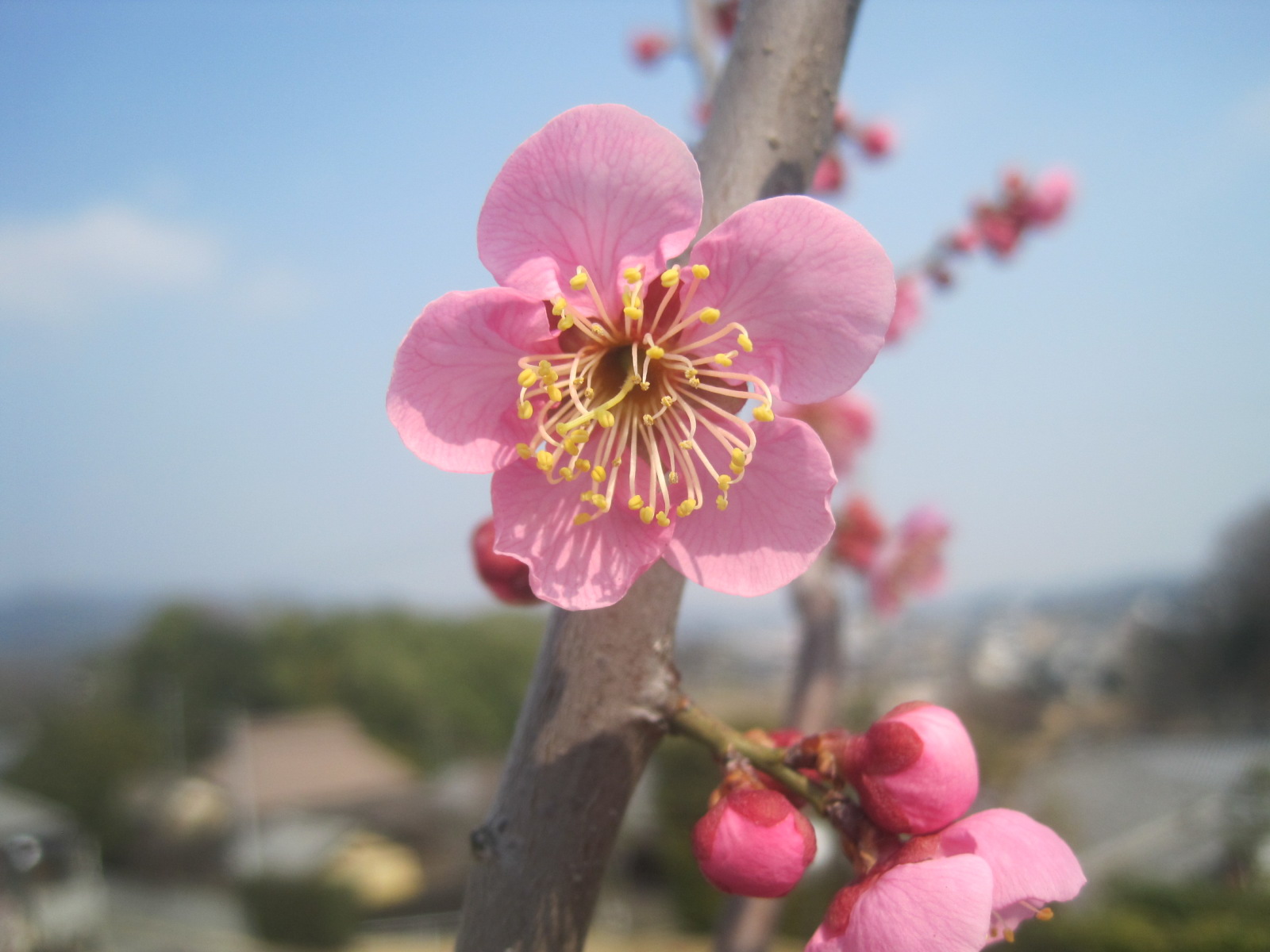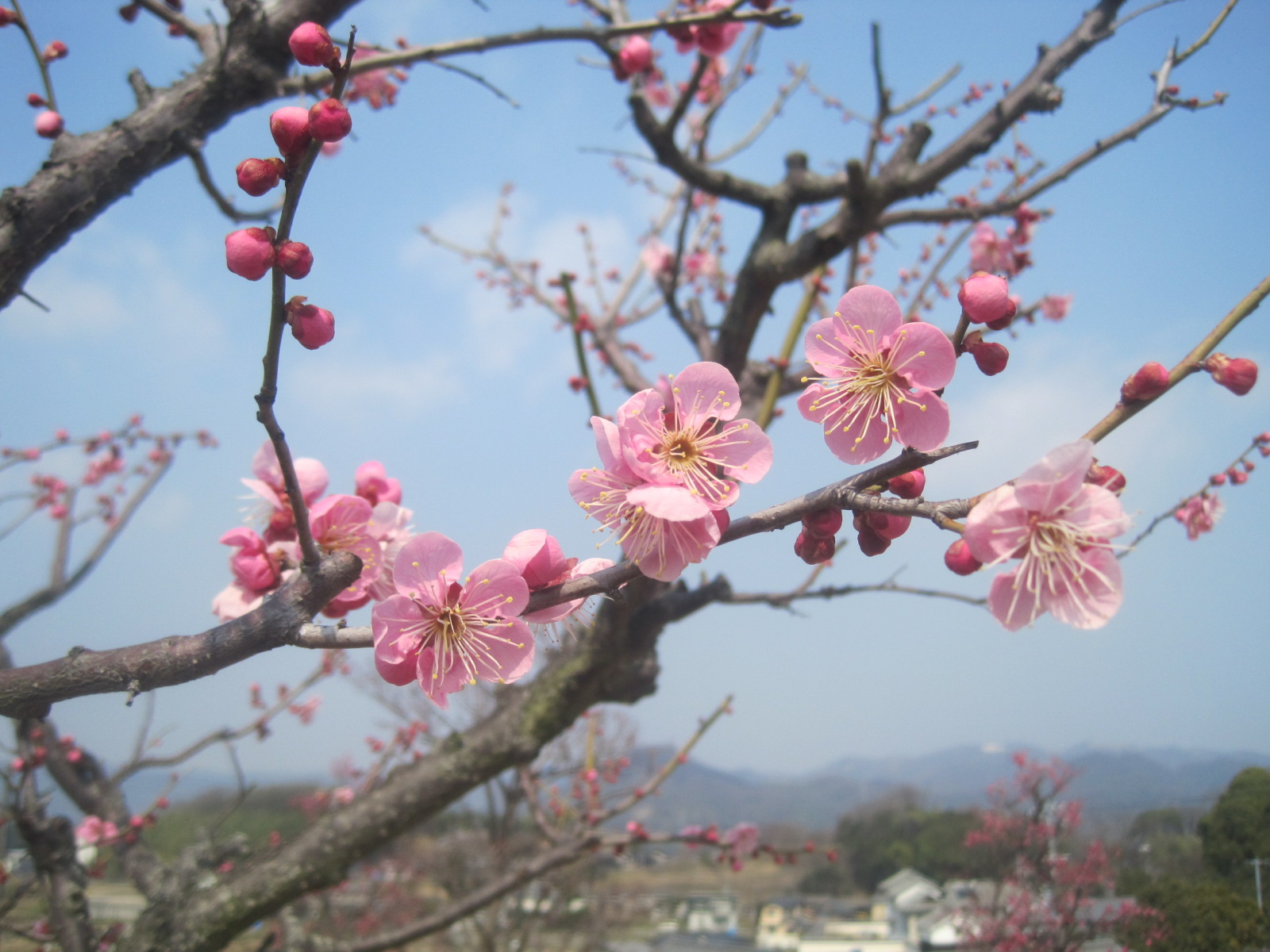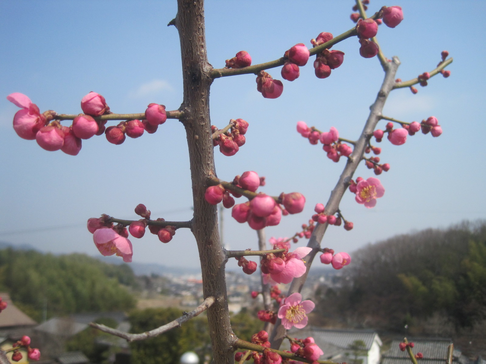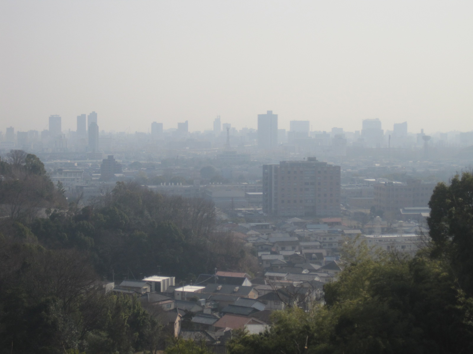 今日は三寒四温の「温」の日・・・春霞のような空気! そして,理大の丘から岡山市街地も少し霞んでいます。