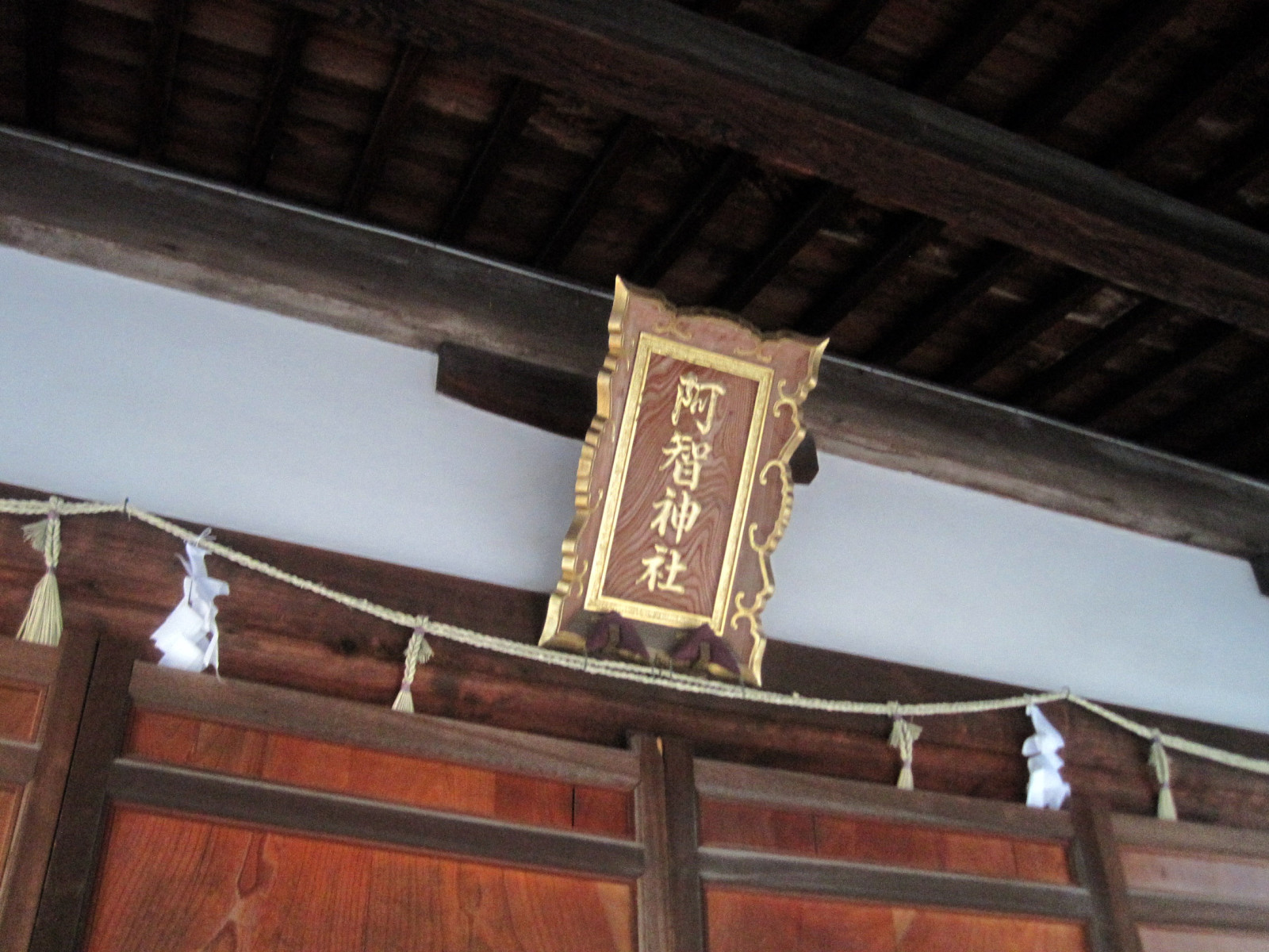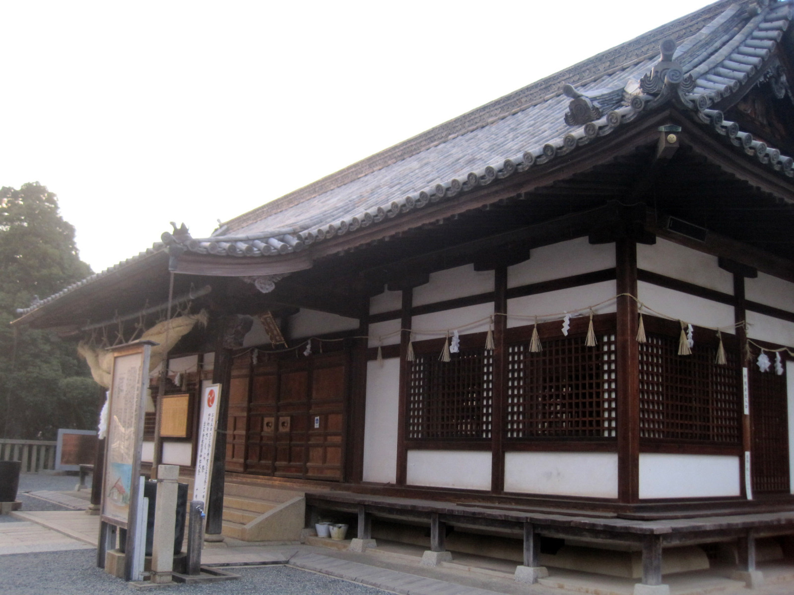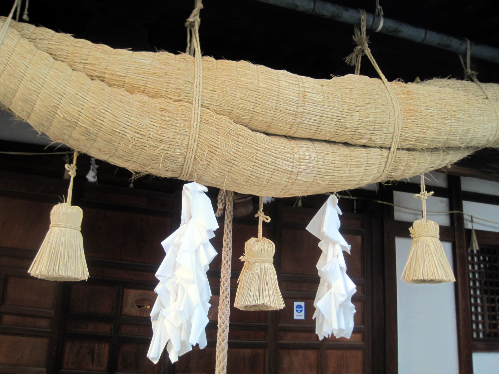 拝殿前は,大きな注連縄です。