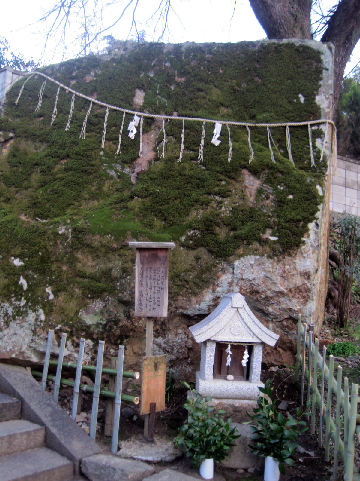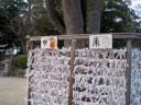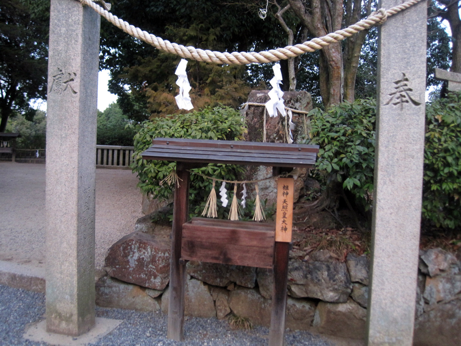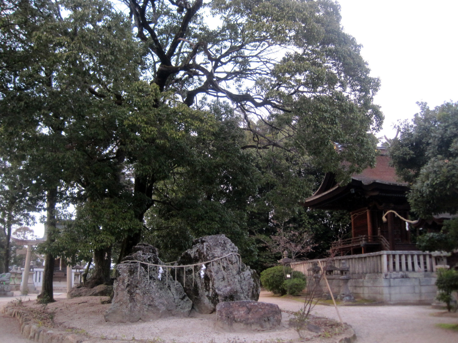 拝殿前は,大きな注連縄です。