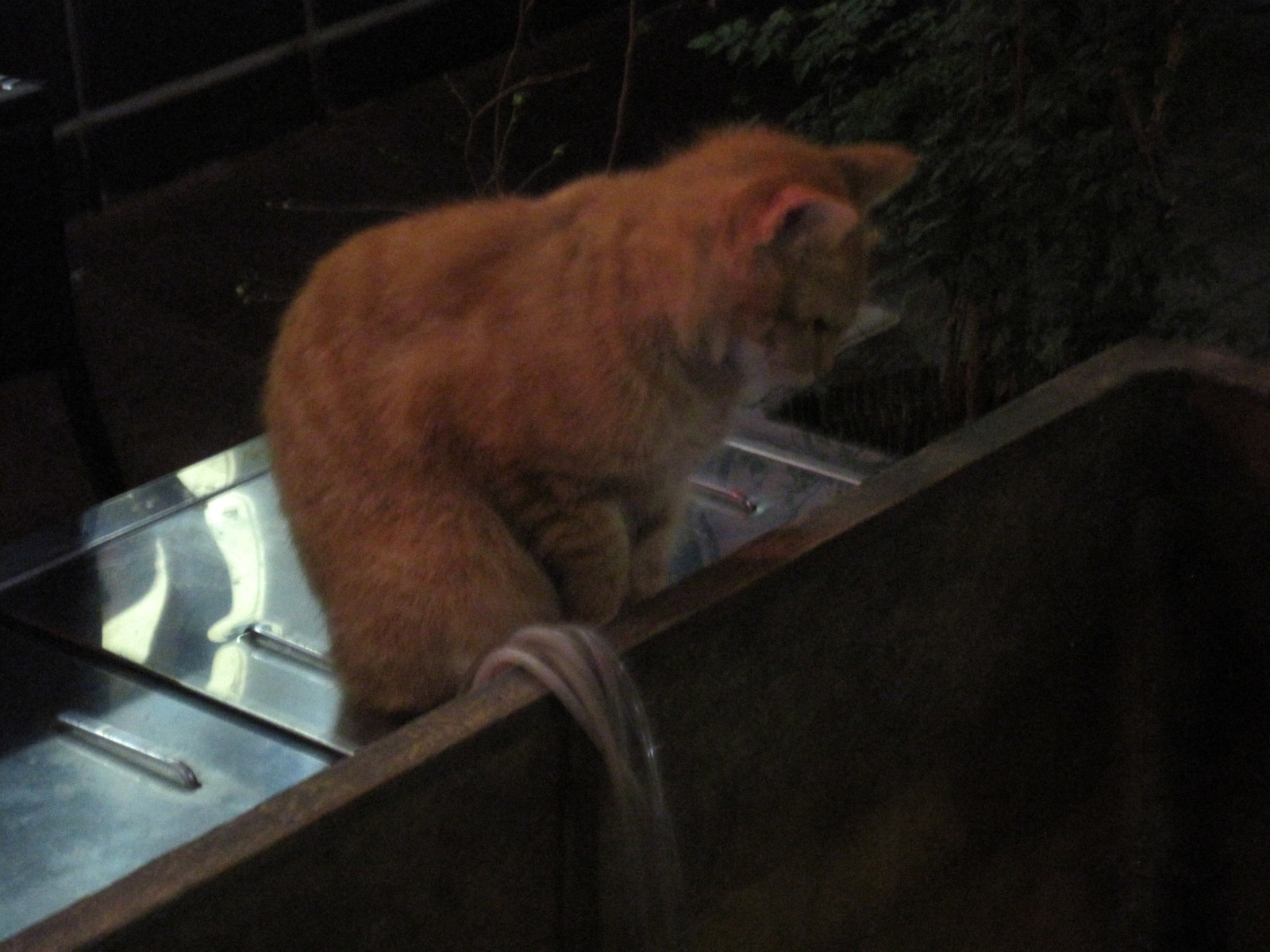 センター街を駅に向かって(二次会・・昭和歌謡の大カラオケ大会でしたが),途中,ウナギの水槽を見る(狙う?)ネコちゃん!