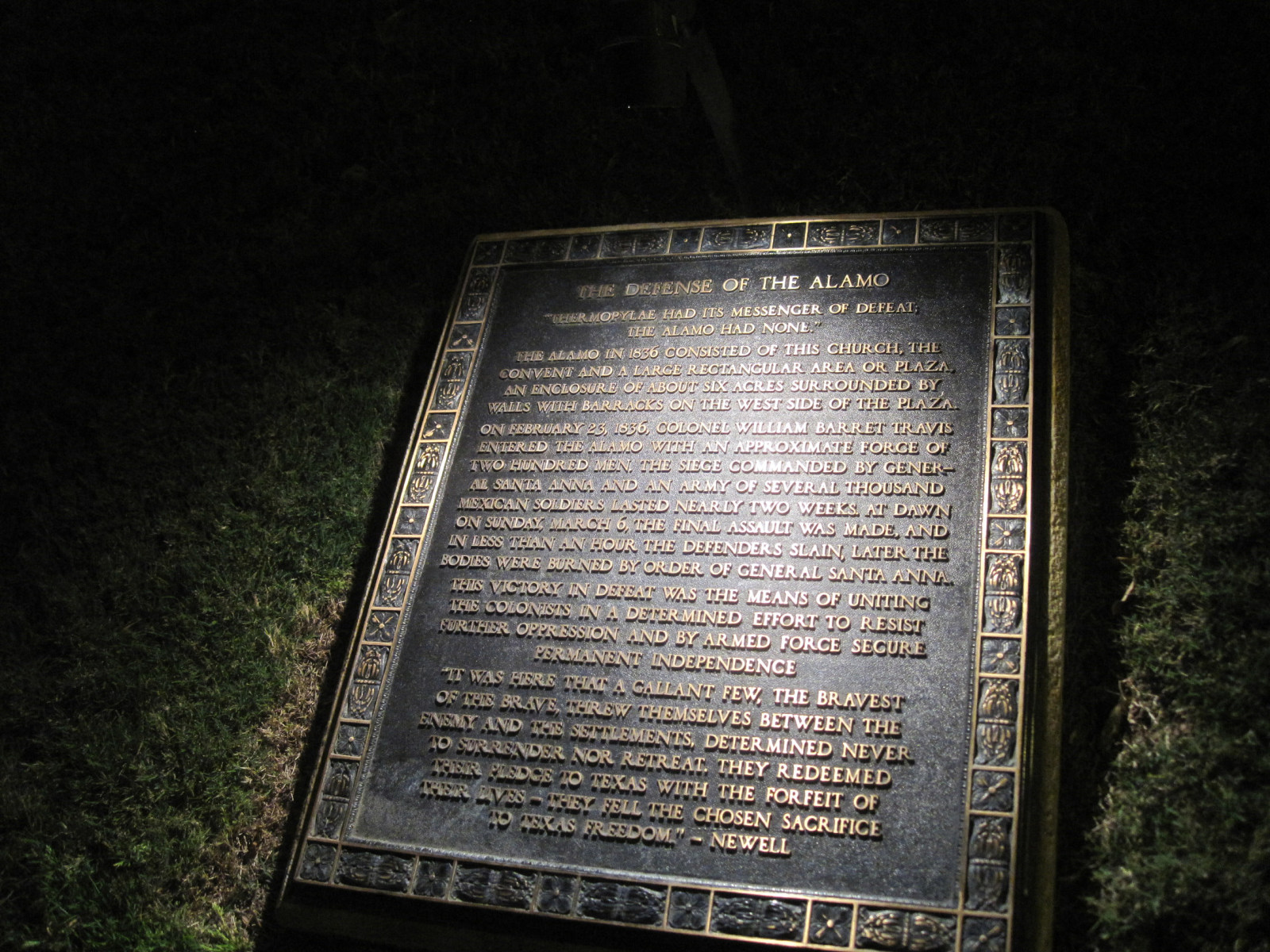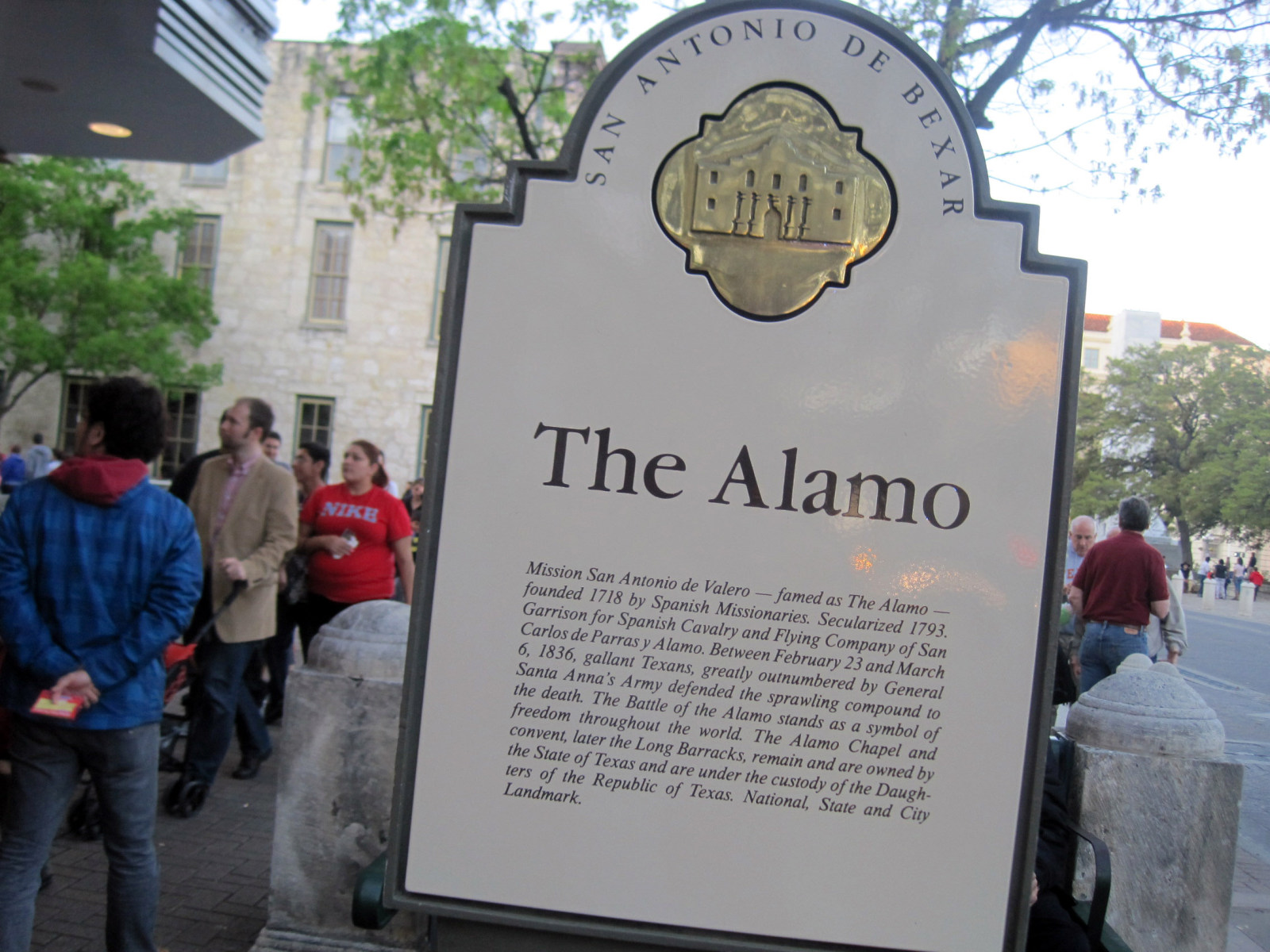 アラモ砦【アラモの戦い(アラモのたたかい、Battle of the Alamo)は、テキサス独立戦争中の1836年2月23日 - 3月6日の13日間にメキシコ共和国軍とテキサス分離独立派(テクシャン反乱軍)の間で行われた戦闘。テキサス側の拠点とされ戦闘の舞台となったアラモ伝道所はテキサス州サンアントニオ中心街の一角に遺跡がある。】です。