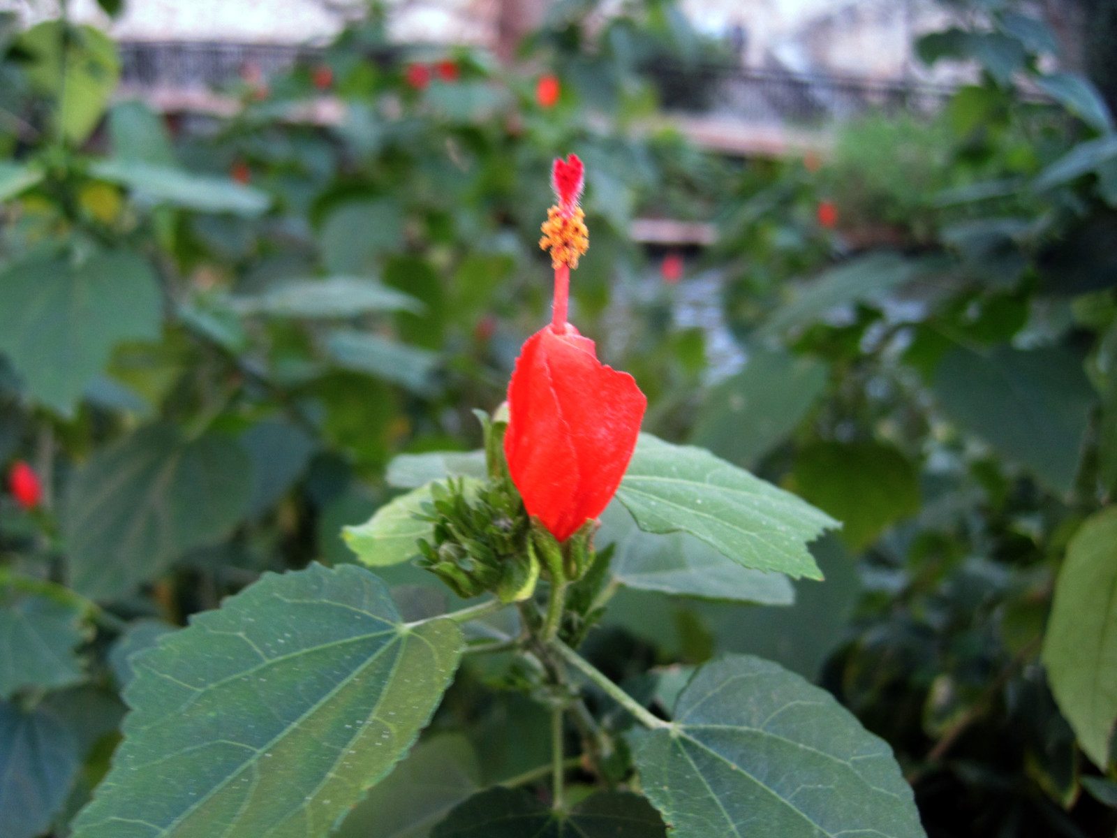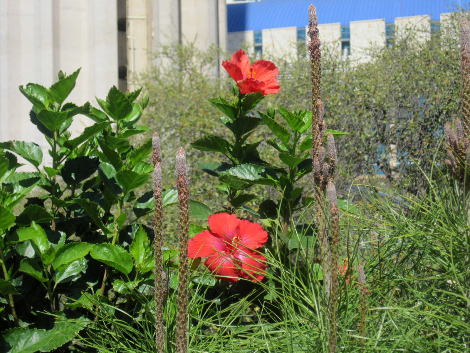 実はアラモ砦の裏手にホテルがあります・・その近くの歩道の花々
